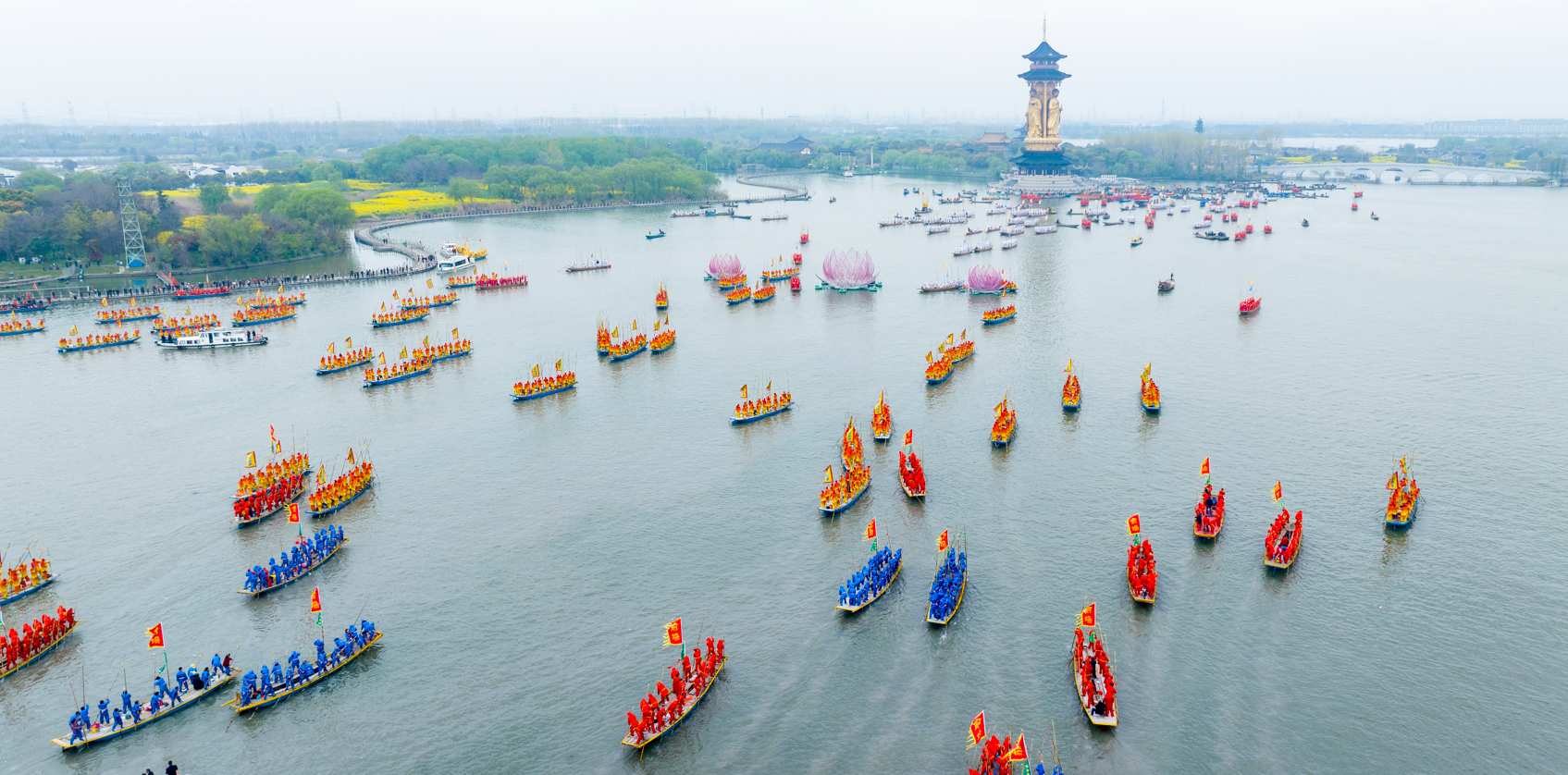 4月6日,2024泰州姜堰溱潼會船在溱湖國家濕地公園盛大開幕。五百多條各式各樣的船只和上萬名會船選手飛篙走槳,弄潮擊浪,演繹歷久彌新的民俗畫卷。現場數萬中外嘉賓、游客共同領略水鄉風情,暢享民俗文化的盛宴,見證“世界最大水上廟會”的壯觀景象。