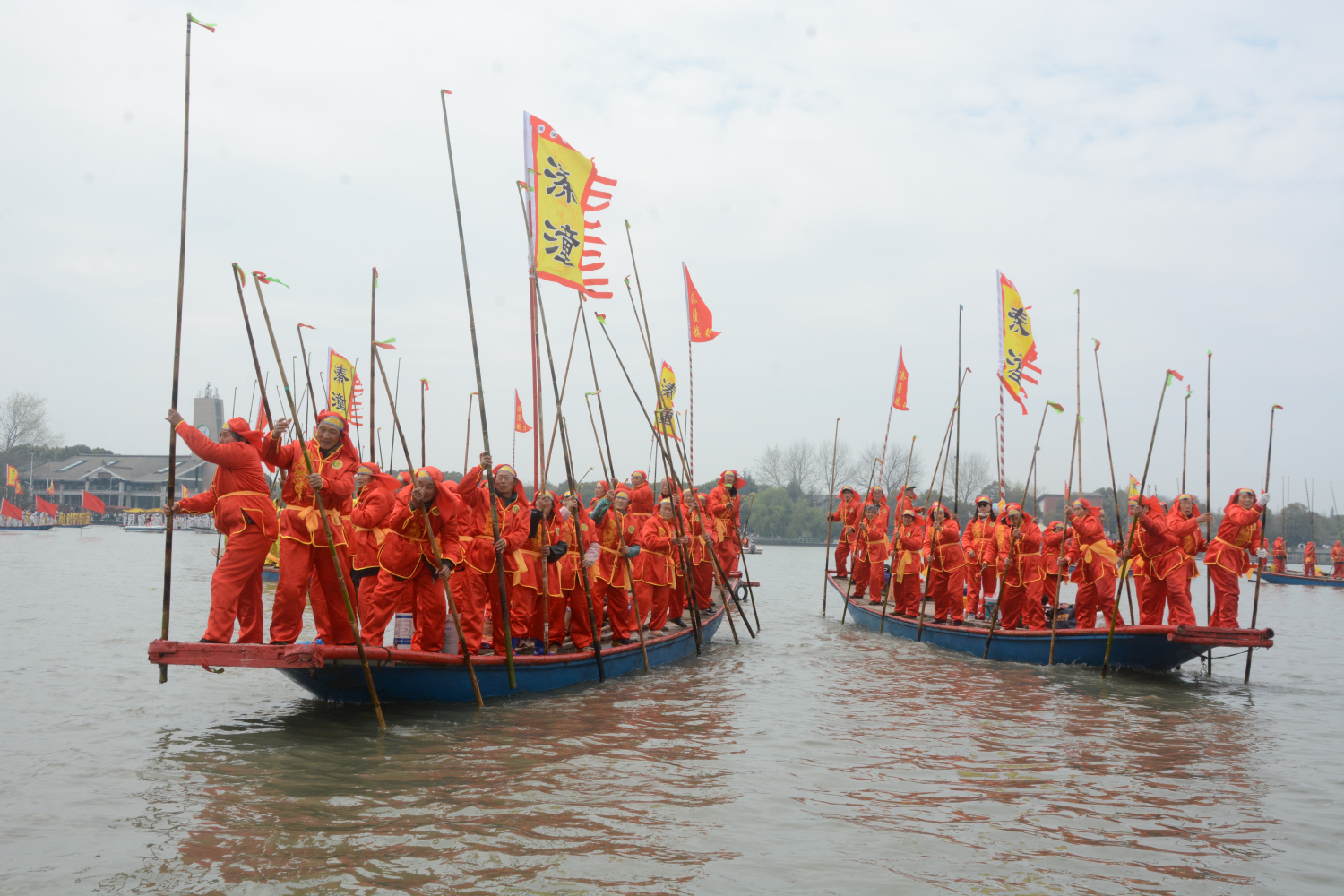 會船期間,文化、賽事、經貿為一體的饕餮盛宴如約而至。看“閱繁花結良緣”的溱潼萬朵古山茶,共賞樹齡最長、花朵最多、直徑最大的“茶花王”;千年老槐講述美麗傳奇的愛情故事;“勤來溱湖,養生養福”藥師佛文化;里下河、溱潼端午龍舟邀請賽展示傳統龍舟的精彩和魅力;溱湖灣濕地音樂會再現地方特色的歌舞文化;游客不僅欣賞到會船的精彩,而且還能品嘗到當地的“舌尖美食”……溱潼會船已成為對輝煌歷史的追憶、民俗文化的傳承,成為“保存最為完整、最具生態特質的水上廟會”。 今年會船節期間,游客們還能目睹世界、亞洲、中國大型體育賽事活動。第十屆黃龍士世界女子圍棋團體錦標賽、溱湖路亞精英賽、2024泰州鐵人三項亞洲杯賽、2024溱湖濕地半程馬拉松賽、康養名城·全民健身堰上系列活動……悉數登場。