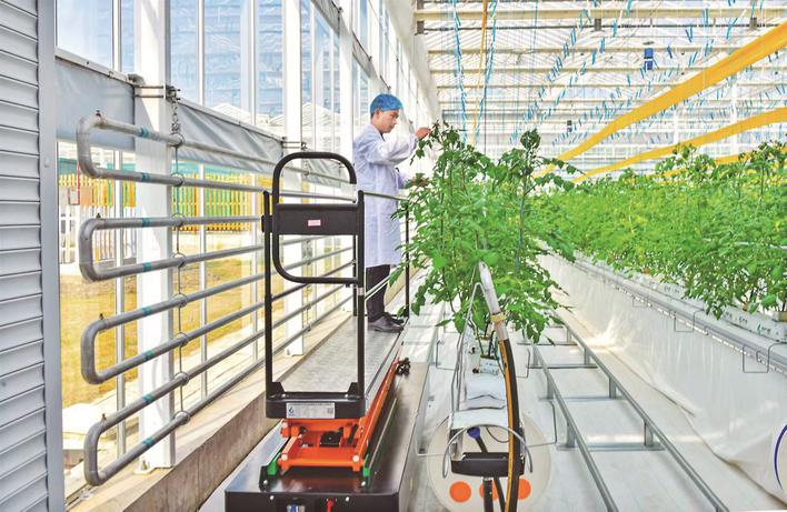 清明時(shí)節(jié),天氣乍暖還寒,溱湖智慧農(nóng)業(yè)園內(nèi)春意盎然,呈現(xiàn)一派忙碌的景象。2.2萬(wàn)平方米大棚種植生產(chǎn)區(qū),離地面約一米高的臺(tái)架上,8萬(wàn)株愛(ài)索301西紅柿長(zhǎng)勢(shì)正旺,碧綠的藤蔓開(kāi)滿金燦燦的小黃花,鵪鶉蛋大小的青果掛滿枝頭。工人們身穿無(wú)菌工作服,乘坐專用軌道升降車,巡回檢查空中的藤蔓,除去多余的枝頭和畸形花。 “這個(gè)大棚就是個(gè)智能化無(wú)菌車間,要經(jīng)過(guò)培訓(xùn)熟練掌握操控技術(shù)后才能上崗,每次進(jìn)出都要消毒。”溱潼鎮(zhèn)湖南村60多歲的村民李才鳳說(shuō),這里智能化程度高,基本就是按著鍵鈕前行,就連剪枝掐花都乘坐軌道車,“活到這個(gè)歲數(shù),沒(méi)想到,種田不用動(dòng)腿的。” 棚內(nèi)四季恒溫,蜜蜂爭(zhēng)春,采花授粉。項(xiàng)目技術(shù)負(fù)責(zé)人張波介紹,大棚內(nèi)的溫度、濕度等指標(biāo)都是精準(zhǔn)控制的,實(shí)行水肥一體化灌溉,定時(shí)、定量施肥保證果蔬標(biāo)準(zhǔn)化生長(zhǎng),營(yíng)養(yǎng)均衡。“全程智能化控制、可視化監(jiān)測(cè)、標(biāo)準(zhǔn)化管理,節(jié)工降本,效益倍增。”張波介紹,目前大棚種植區(qū)內(nèi)種植的西紅柿,預(yù)計(jì)3月底4月初上市,每平方米產(chǎn)量20至25公斤。 溱湖智慧農(nóng)業(yè)園項(xiàng)目占地面積62畝,總投資1.2億元。2023年,一期項(xiàng)目投資6000萬(wàn)元,姜堰區(qū)上爭(zhēng)資金1500萬(wàn)元,建成數(shù)智化玻璃溫室2.67萬(wàn)平方米,其中種植生產(chǎn)區(qū)2.2萬(wàn)平方米。 “這里可謂是現(xiàn)代智慧農(nóng)業(yè)的樣板!”張波介紹,智慧農(nóng)業(yè)園蔬菜種植生產(chǎn)區(qū)引進(jìn)應(yīng)用自動(dòng)化椰糠無(wú)土栽培種植系統(tǒng)、智能化水肥一體化系統(tǒng)和工廠化育苗技術(shù),可節(jié)水70%以上、節(jié)肥50%以上,農(nóng)產(chǎn)品產(chǎn)量是傳統(tǒng)溫室的5至10倍。 走進(jìn)園藝展示區(qū),猶如走進(jìn)多彩的童話世界。各種生長(zhǎng)在空中的蔬菜宛如一個(gè)個(gè)碩大的盆景,造型美麗別致。展示區(qū)依托5G、區(qū)塊鏈、大數(shù)據(jù)等現(xiàn)代信息技術(shù),利用LED顯示屏、沙盤、成品展示等方式,開(kāi)展新品種、新技術(shù)的示范推廣。 據(jù)介紹,整個(gè)項(xiàng)目包括高效蔬菜種植生產(chǎn)、園藝展示、空中草莓種植、五彩番茄采摘、繽紛黃瓜采摘、種植附屬配套區(qū)等六大功能區(qū),集產(chǎn)學(xué)研、觀光休閑、農(nóng)技培訓(xùn)展示于一體。基地預(yù)計(jì)每年可生產(chǎn)優(yōu)質(zhì)果蔬100萬(wàn)公斤,直接帶動(dòng)當(dāng)?shù)鼐蜆I(yè)50人以上,人均增收1.5萬(wàn)元以上。 據(jù)介紹,溱湖智慧農(nóng)業(yè)園項(xiàng)目毗鄰溱湖濕地景區(qū),可以充分承接景區(qū)溢出效應(yīng),實(shí)現(xiàn)農(nóng)旅融合。為此,項(xiàng)目專門配套建設(shè)游客碼頭,打造成溱湖水上游覽線的重要節(jié)點(diǎn),預(yù)計(jì)每年可接待游客100萬(wàn)人次。 來(lái)源:泰州新聞網(wǎng) |