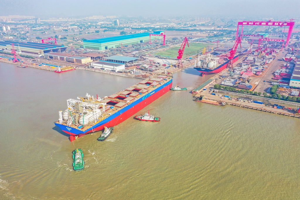 全國造船看江蘇,江蘇造船看靖江。作為全國最大的民營造船基地,國家級船舶出口基地,以新時代、新揚子造船為代表的靖江船舶企業2023年新接訂單增長71%,手持訂單、造船完工量分別增長29.9%和12.6%,船舶產業規上總產值增長39.9%,在全球造船業中占據領先地位。 新時代造船所在的靖江經濟技術開發區,解放前,這里洼田密布、河道縱橫,渡江大軍曾在此集結,六助港、羅家港等,都是重要的渡江點。今年100歲的老船工陳子根,當年便是從羅家港出發,運送十兵團第29軍的戰士過江。 時過境遷,如今這片土地港口碼頭吊機林立、現代化廠房鱗次櫛比、生產機器轟鳴不絕,已經成為靖江經濟發展的主陣地、主戰場、主引擎,坐擁國家級經濟技術開發區、國家一類開放口岸、保稅物流中心(B型)三塊“金字招牌”。