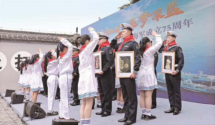 “回家鄉(xiāng)看親人” 4月23日,“不忘初心·逐夢(mèng)深藍(lán)”——慶祝中國(guó)人民解放軍海軍成立75周年活動(dòng)在海軍誕生地泰州白馬廟舉行,并啟動(dòng)海軍泰州艦官兵“回家鄉(xiāng)看親人”活動(dòng)。