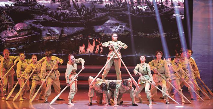 泰州兒女和海軍官兵始終心心相連、相守相望,我們永遠(yuǎn)這樣親!4月23日晚,“我們永遠(yuǎn)這樣親”泰州市慶祝人民海軍成立75周年文藝演出舉行。 演出在舞蹈《渡江》中拉開(kāi)帷幕,快板書(shū)《第一帆》、歌曲聯(lián)唱《在海軍誕生的地方》《我愛(ài)這藍(lán)色的海洋》《軍港之夜》、二胡齊奏《戰(zhàn)馬奔騰》、情景講述《從這里走向深藍(lán)》……“海軍誕生地 水兵母親城”的兒女用形式多樣豐富多彩的文藝節(jié)目,向英雄的人民海軍致敬。“你是我的母親城,我是你的鐵長(zhǎng)城……”歌伴舞《我們永遠(yuǎn)這樣親》,更是唱出泰州人民與人民海軍之間“軍愛(ài)民來(lái)民擁軍,軍民魚(yú)水情更深”的美好情誼。 大辮子姑娘奮力劃槳送解放軍過(guò)大江的背影,是泰州人民擁軍支前的縮影,是泰州兒女矢志革命、投身革命的生動(dòng)映照,泰州這座英雄之城也孕育出了“三個(gè)不相信”城市精神特質(zhì)。紅色宣講《大辮子姑娘》、歌曲《楊根思》、情景表演《永遠(yuǎn)的兒童號(hào)》,展現(xiàn)著泰州這片熱土上代代相傳的紅色基因。