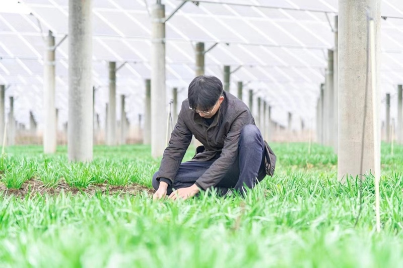 2020年年初,陸志祥辭職歸鄉(xiāng),租了50畝地,嘗試在光伏板下種植韭菜。如今,陸志祥的農(nóng)場種植面積已經(jīng)發(fā)展到220畝,種植有黑苗、韭寶、本地小韭菜等多個品種,2023年畝產(chǎn)量4000公斤左右。