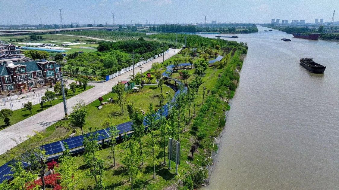 百舸生態園原址是一片內河船舶制造集聚區,機器設備多,噪音大,灰塵也大,曾為當地環境帶來沉重負擔。 2019年,海陵區率先開展非規造修船企業“三治”行動,隨之,船廠集聚區的復綠行動也拉開帷幕。數年間,海陵區投入1.8億元,關停38家造修船企業,并開展土壤污染調查和生態修復,建成百舸生態園。 整治后,園內綠化苗木近2萬株,草皮約20萬平方米,40萬平方米的沿河風光帶四季有景、風光宜人,讓沿岸數百戶居民近水更親水。 夜幕降臨,一條盤踞于此的“巨龍”閃著暖色的光。彩虹光伏長廊采用“自發自用、余電上網”模式,年發電量可達18萬度左右,每年可節約標準煤量64.98噸、削減二氧化碳排放量238.32噸,實現了運河、綠地、民居、長廊和諧共存,繪就了一幅美麗的清潔能源新畫卷。 當昔日臟亂的船廠被一片綠意覆蓋,光伏走廊點亮新晉“網紅打卡地”,“新質生產力就是綠色生產力”在海陵區找到了鮮活注解。 生態向綠,產業更要向新。 在新舊動能轉換的大潮中,海陵區原有的化工企業、非規造修船企業紛紛退出歷史舞臺。與此同時,林海、春蘭等一批知名優勢“老企業”煥發“新生機”。林海集團跨界轉型,利用老廠房,打造瑞力·泰渡雙創街區;春蘭集團新建年產15GWh高性能鋰離子電池項目,盤活老廠區、形成新產業、激活新動能。