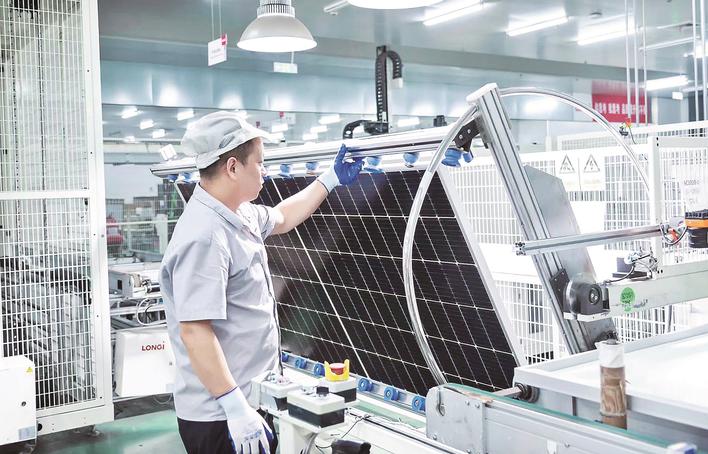 工廠裝備智能化率70%以上、產品在線自動檢測率達80%、倉儲物流智能化率50%……泰州康乾機械制造有限公司從“開局”十幾個人、租的5000平方米廠房、做摩托車配件的小廠,發展成超特高壓GIS用鋁合金精密異型鑄件細分行業領跑者、國家級專精特新“小巨人”企業,產品遠銷美國、德國、日本、印尼等國家。 “我們與多所高校開展產學研合作,通過技術創新‘站穩’制高點,目前擁有高新技術產品4個系列,各類專利40多項,GIS鋁合金系列鑄件在導電率、強度等核心技術上達到國際先進水平。”該公司董事長唐大林表示,新質生產力必須由高科技、高效能、高質量的創新打底,公司將持續加大技改投入力度,加強與國內知名院所的產學研合作,增加技術儲備,爭取成為行業領軍企業。 專精特新企業以專注鑄專長,以配套強產業,以創新贏市場,是中小企業中的優秀代表。截至目前,海陵區累計培育省級以上專精特新企業35家。其中,國家級制造業單項冠軍示范企業1家,國家級專精特新“小巨人”企業4家。 在海陵區,金橋焊材、科化新材料、長力樹脂管等一批優質企業在細分領域高歌猛進,其技術水平和產品市場占有率居于國際、國內領先水平,成為行業“單打冠軍”和“配套專家”,正快速成長并積極爭創國家專精特新“小巨人”企業。 海陵區聚力打造高水平“創新矩陣”,推進集萃材料表面工程技術研究所重大平臺建設,發揮北京、上海、南京三家離岸創新中心作用。與此同時,持續深化“科企聯姻”系列活動,打通市場主體創新和科研成果轉化通道,推動海陵區汽車零部件、數控機床等傳統產業更新蝶變。 引進外來 用心壯大新興產業 當下,人工智能、大數據、云計算、物聯網等新一代信息技術日新月異,新能源、新材料等新興產業蓬勃發展。 海陵區順勢而為、乘勢而上,持續推進“工業強區”戰略,大力發展新能源、新材料、新一代信息技術等新興產業。至2023年末,全區戰略性新興產業產值占比達62.27%。 海陵區以打通上下游,完善和延伸產業鏈的工作思路,大力培育新興產業集群。搶抓晶硅光伏產業集群創成省級中小企業特色產業集群的機遇,全力構筑新能源現代化產業體系新支柱。圍繞太陽能光伏電池與組件、動力電池和新能源裝備制造等領域,聚焦補鏈強鏈,推動新能源產業鏈完備度向更高邁進。 走進泰州隆基光伏科技有限公司的智能化生產車間,一臺臺自動化生產設備馬力全開,機械臂有序揮舞,一件件光伏組件產品陸續完成生產下線。