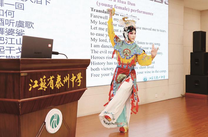 6月22日至24日,“錦繡江蘇·美國青少年交流營”活動走進泰州,來自美國五個州的41名師生展開了為期三天的特色校園行、歷史人文之旅、科技體驗之旅、田園生態之旅。一路上,大家聽京劇、畫臉譜、練武術、品早茶、游溱湖,沉浸式體驗中國傳統文化民俗的深厚魅力。 體驗傳統文化,感受國粹魅力 “京劇是中國國粹之一。出身京劇世家、祖籍泰州的梅蘭芳先生是第一位帶著中國京劇走向世界的京劇藝術大師,他的藝術風格獨特,被譽為‘梅派’!22日上午,美國師生走進江蘇省泰州中學,開展“梅韻京腔”活動。