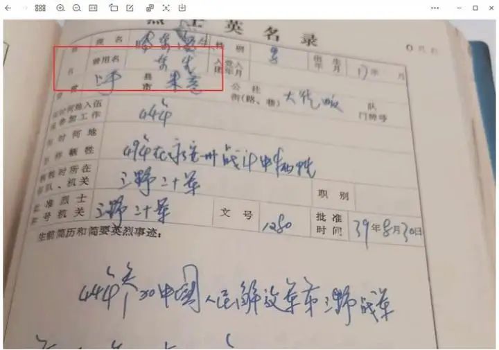 △記者采訪張東生烈士侄子和侄孫女。顧和平供圖 根據尋親線索和中華英烈網查詢結果,張東生烈士的籍貫為浙江上虞。張華聯系浙江省紹興市退役軍人事務局進行核查,喜訊很快傳來:紹興市上虞區永和鎮大墩村發現一名叫張東生的烈士,身份信息基本吻合。上虞區退役軍人事務局還提供了一份革命犧牲軍人光榮紀念證存根,載明烈士張東生籍貫為浙江省上虞縣城關區大陡畈村,即今天的紹興市上虞區永和鎮大墩村。 6月26日,陰雨連綿。尋親專班來到大墩村,到張東生烈士的侄子張國光家里實地走訪。 讓人意外的是,張國光女兒張凌飛告訴尋親專班,“我從小就聽家人講小爺的故事,知道他在渡江戰役時犧牲了。不過,他老人家的名字叫張東海,不叫張東生!” 張東海是張東生嗎?在當地退役軍人事務局幫助下,當晚7點多鐘,尋親專班來到上虞英烈紀念館,進一步進行核實。 △烈士英名錄顯示,張東海曾用名張東生。 令人驚喜的是,館內“浙江烈士英名錄”第118頁,記載著張東海烈士曾用名“張東生”,1917年出生,1944年入伍,1949年犧牲在永安洲。 永和鎮人武部副部長羅一鎣還查閱到原上虞縣民政局1983年的原始檔案,上面清楚記載:烈士張東海,曾用名張東生,原朱巷大陡畈村人。1944年參加中國人民解放軍第三野戰軍第20軍工作,不幸于1949年4月永安洲戰役中犧牲。 張東海為什么改名張東生?上虞區退役軍人事務局擁軍優撫科科長宋其說,上虞是革命老區,當時一些革命者都化名開展工作,以防敵人迫害家人。他推測,張東海可能擔心國民黨反動派報復家人,所以改名張東生。 一切水落石出,72歲的張國光感慨萬千。他說,爺爺去世得早,父親比小叔大10多歲,可以說小叔就是父親拉扯大的,兩人感情很好。小叔犧牲后,父親生前一直念叨著要讓小叔葉落歸根,但一直找不到小叔的墓地。現在,父親的遺愿終于可以實現了。 “戰火與歲月帶來一層層霧靄,讓大量烈士信息‘看得見卻摸不著’。為烈士尋親,就是要一關接一關地解碼和揭秘。我們尋找的不僅是‘團圓’,更是那穿透時空的精神、為真理獻身的信仰。”張華說。 來源:泰州新聞網 |