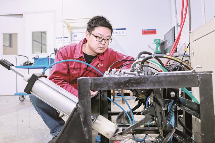 “設(shè)備定期維檢要細(xì)心。”又一個(gè)工作日的上午,江蘇恒力制動(dòng)器集團(tuán)首席高級(jí)技師、維修電工班班長(zhǎng)黃俊跨進(jìn)車(chē)間,開(kāi)始日常點(diǎn)檢。黑框眼鏡內(nèi),一雙炯炯有神的眼睛,緊盯運(yùn)轉(zhuǎn)的設(shè)備,專(zhuān)注且執(zhí)著……前不久,全國(guó)總工會(huì)公布入選2024年大國(guó)工匠培育對(duì)象名單,江蘇共13人入選,泰州市黃俊上榜。 “從0到1”突破自我 制動(dòng)器即剎車(chē),是“生命零部件”。恒力集團(tuán)正是生產(chǎn)商用汽車(chē)制動(dòng)器的企業(yè),在國(guó)內(nèi)商用車(chē)鼓式、盤(pán)式制動(dòng)器領(lǐng)域,穩(wěn)坐“單打冠軍”寶座。 器物有形,匠心無(wú)界。1998年,21歲的黃俊中專(zhuān)畢業(yè),進(jìn)入公司。“剛來(lái)不久修車(chē)床,我一個(gè)疏忽,把低壓線接到了高壓線上,結(jié)果配電箱變壓器直接報(bào)廢,損失不小。”黃俊沒(méi)有受處罰,而是被要求分析事故產(chǎn)生的原因,并引以為戒。從那以后,每一次操作,他都細(xì)心、謹(jǐn)慎。 恒力集團(tuán)董事長(zhǎng)徐旗釗至今記得,20年前,黃俊找他想去上海進(jìn)修的情景。當(dāng)年,他在靖江率先引進(jìn)數(shù)控機(jī)床。然而,因缺乏維修人員,機(jī)器一出問(wèn)題,只好花高價(jià)請(qǐng)外籍專(zhuān)家。“不請(qǐng)他們,機(jī)器就成了擺設(shè)。”脖子被卡,徐旗釗下定決心培養(yǎng)技術(shù)人才。 前兩批培訓(xùn),黃俊并不在列。他毛遂自薦找董事長(zhǎng),說(shuō)也想去。“當(dāng)時(shí)就一個(gè)念頭,只有掌握更高的技術(shù)和技能,才能實(shí)現(xiàn)更大的人生價(jià)值。”爭(zhēng)取到“從0到1”的機(jī)會(huì),黃俊白天認(rèn)真學(xué),晚上別人休息時(shí),他就自學(xué);紙上得來(lái)淺,他又在機(jī)器旁反復(fù)琢磨師傅們教授的知識(shí)。 2006年,黃俊從上海學(xué)習(xí)歸來(lái),一頭扎進(jìn)車(chē)間,和機(jī)器較上了勁。研究圖紙、記錄參數(shù)、改造線路、調(diào)整配件,半年過(guò)后,他完成了公司100多臺(tái)設(shè)備的自動(dòng)化改造。漸漸地,周邊企業(yè)都知道恒力集團(tuán)有個(gè)叫黃俊的“高手”,各種自動(dòng)化設(shè)備維修問(wèn)題也相繼找上門(mén)來(lái)。 “從1到N”跨越發(fā)展 2013年,黃俊和靖江市科協(xié)專(zhuān)家設(shè)計(jì)制造了全自動(dòng)繞線機(jī),并取得國(guó)家實(shí)用新型專(zhuān)利,填補(bǔ)了國(guó)內(nèi)空白。“全自動(dòng)繞線機(jī)每臺(tái)節(jié)約5%至10%的銅材,一年可以省下10多萬(wàn)元。”之后,他帶領(lǐng)團(tuán)隊(duì)設(shè)計(jì)的氣壓盤(pán)式制動(dòng)器“制動(dòng)間隙自動(dòng)檢測(cè)流水線”,確保了制動(dòng)裝置合格率達(dá)到100%,被評(píng)選為中國(guó)汽車(chē)科學(xué)技術(shù)三等獎(jiǎng),為公司節(jié)約了200多萬(wàn)元技改資金,每年產(chǎn)生經(jīng)濟(jì)效益1000多萬(wàn)元。 2014年,恒力集團(tuán)以黃俊領(lǐng)銜的“技師創(chuàng)新工作室”和“技能大師工作室”成立。在這條師徒傳承的全新賽道,黃俊整理出10多本記錄著解決復(fù)雜疑難問(wèn)題和心得體會(huì)的工作筆記,分享給大家。在他的培養(yǎng)下,工作室成員張志江憑著“加工孔位誤差2絲,相當(dāng)于頭發(fā)絲粗細(xì)的1/5”等絕技,進(jìn)入第二屆“靖江工匠”序列;姚紅被評(píng)為泰州市企業(yè)首席技師。在校企合作中,黃俊培養(yǎng)了1500余名中級(jí)工以上人才。 2022年,黃俊得了腎結(jié)石,那時(shí),正值公司一個(gè)重要項(xiàng)目上線。“師傅,你怎么穿著病號(hào)服就來(lái)了?”看到黃俊“溜”回公司,倉(cāng)庫(kù)管理員徐玲愣住了。“生產(chǎn)線上遇到了問(wèn)題,我來(lái)看一下。”轉(zhuǎn)眼,黃俊在恒力集團(tuán)待了26年,從一名普通電工成長(zhǎng)為“全國(guó)勞動(dòng)模范”“全國(guó)技術(shù)能手”“江蘇大工匠”“長(zhǎng)三角大工匠”,享受?chē)?guó)務(wù)院政府特殊津貼。 總有人問(wèn)他成功的秘訣是什么?“熱愛(ài),肯鉆,敢想敢做,化‘被動(dòng)創(chuàng)新’為‘主動(dòng)創(chuàng)新’。”黃俊如是回答,“如果說(shuō),世上只有一條路,那就是你腳下正在走的這條路。唯有勤學(xué)、苦練,一步一個(gè)腳印,才能奔向星辰大海。”