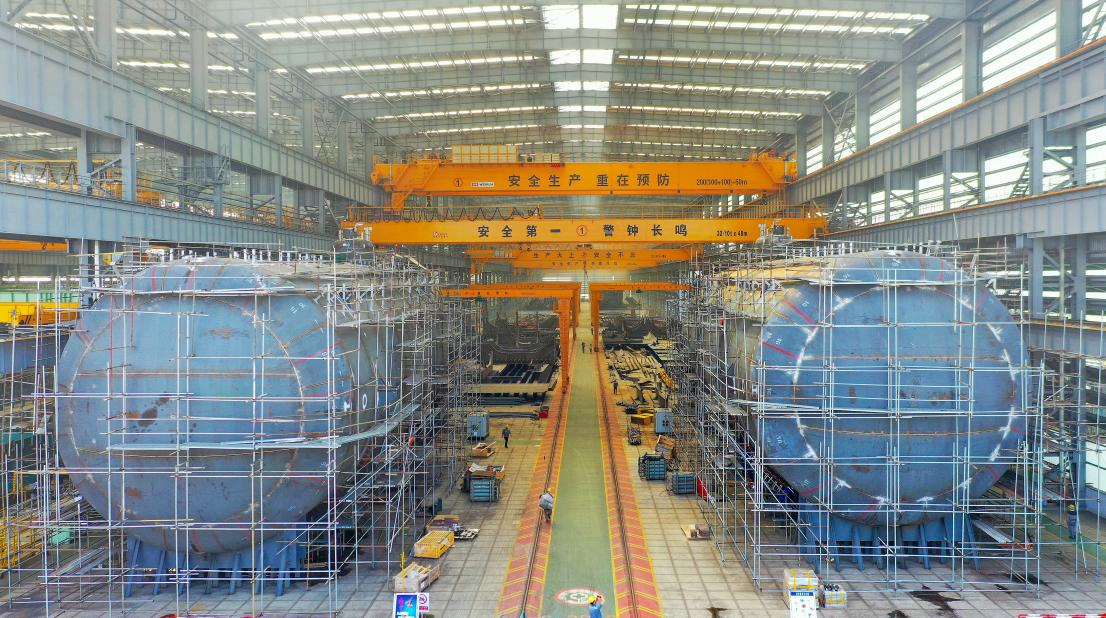 △圖為新時代高端船舶智能化分段制造車間投產(chǎn)。