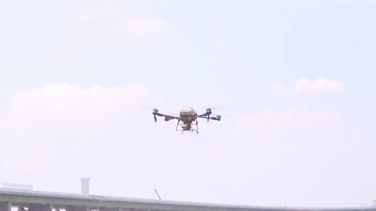 在泰興市虹橋鎮(zhèn)一處高標(biāo)準(zhǔn)農(nóng)田上空,一架植保無(wú)人機(jī)正在噴灑生態(tài)農(nóng)藥,防治“兩蟲(chóng)一病”。 泰興市虹橋鎮(zhèn)農(nóng)業(yè)農(nóng)村工作辦公室工作人員李知遠(yuǎn)說(shuō):“全鎮(zhèn)面積已經(jīng)完成了50%,剩余面積大概會(huì)在3天左右完成。通過(guò)飛防,我們能有效降低病害發(fā)生的基數(shù),減輕病害造成的損失。”