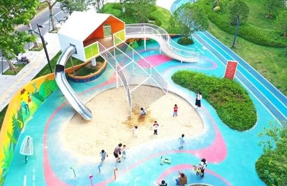 雍錦園南側口袋公園面積約1萬平方米。自去年年底公園竣工開放以來,游玩的居民絡繹不絕,儼然成為姜堰新打卡地。該公園以“多元復合功能場景與精致生活體驗,營造生活的旋律感”為主題,形成各年齡段休閑娛樂、閑談社交、便民服務等多功能活動區。 蠻莊口袋公園面積約1.2萬平方米。公園將多元藝術融入社區生活,如運用透光混凝土、透水混凝土、PC磚等材料,兼顧生態性與藝術性。設置麋鹿卡通雕塑、主題文化景墻等,結合信息化、智慧化裝置,提高公園藝術性與多元性。