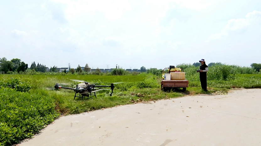 日前,在泰興市珊瑚鎮(zhèn)左莊村雙子家庭農(nóng)場(chǎng),無(wú)人機(jī)飛手王立明正依照“服務(wù)訂單”,為農(nóng)場(chǎng)承包的300畝水稻進(jìn)行飛防作業(yè)。“今年,我已為2000多畝水稻提供了飛防服務(wù)。無(wú)人機(jī)飛防幾乎覆蓋了防病治蟲(chóng)施肥,效率很高,省時(shí)省工。”王立明介紹。