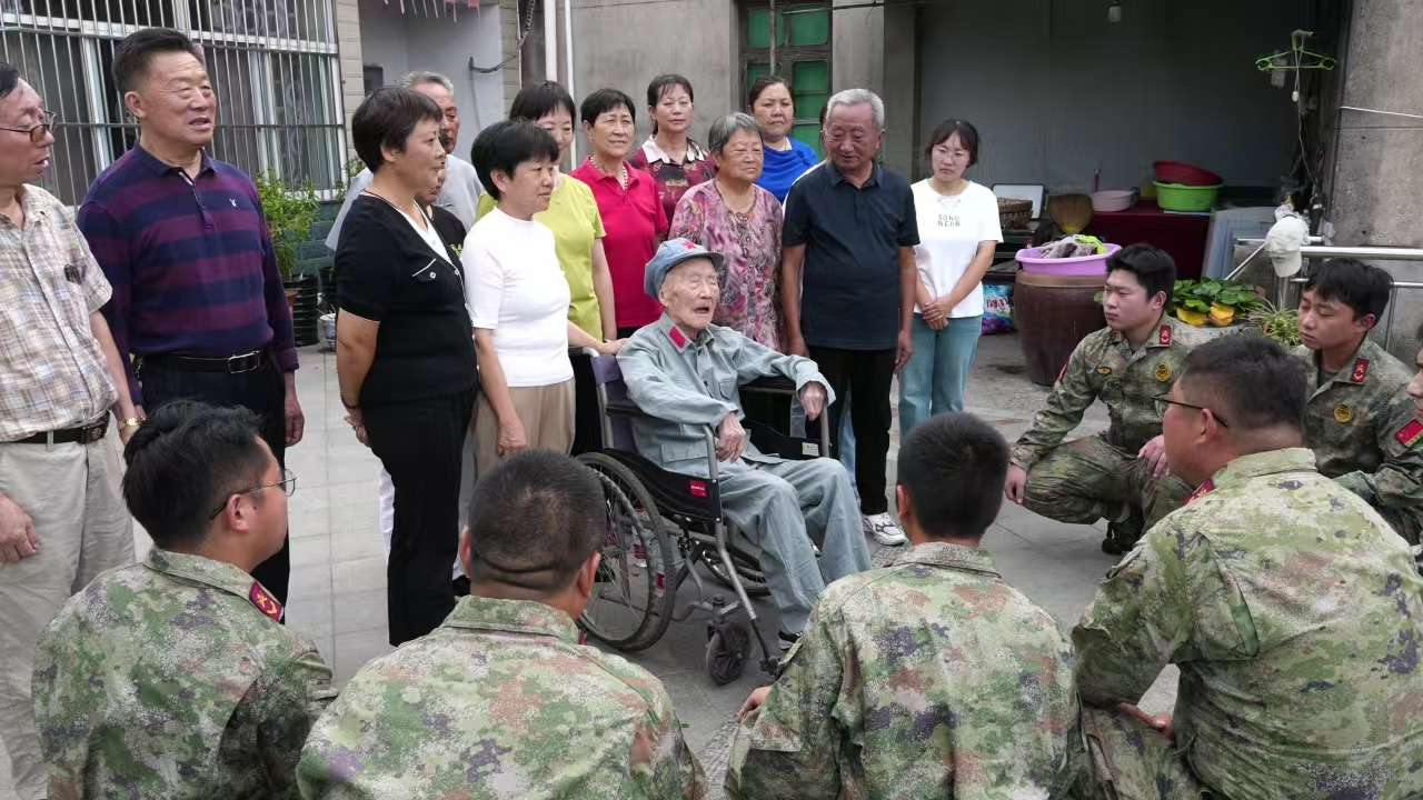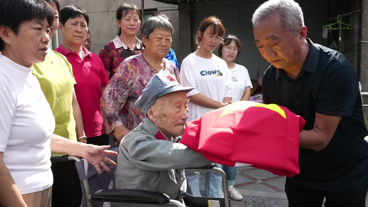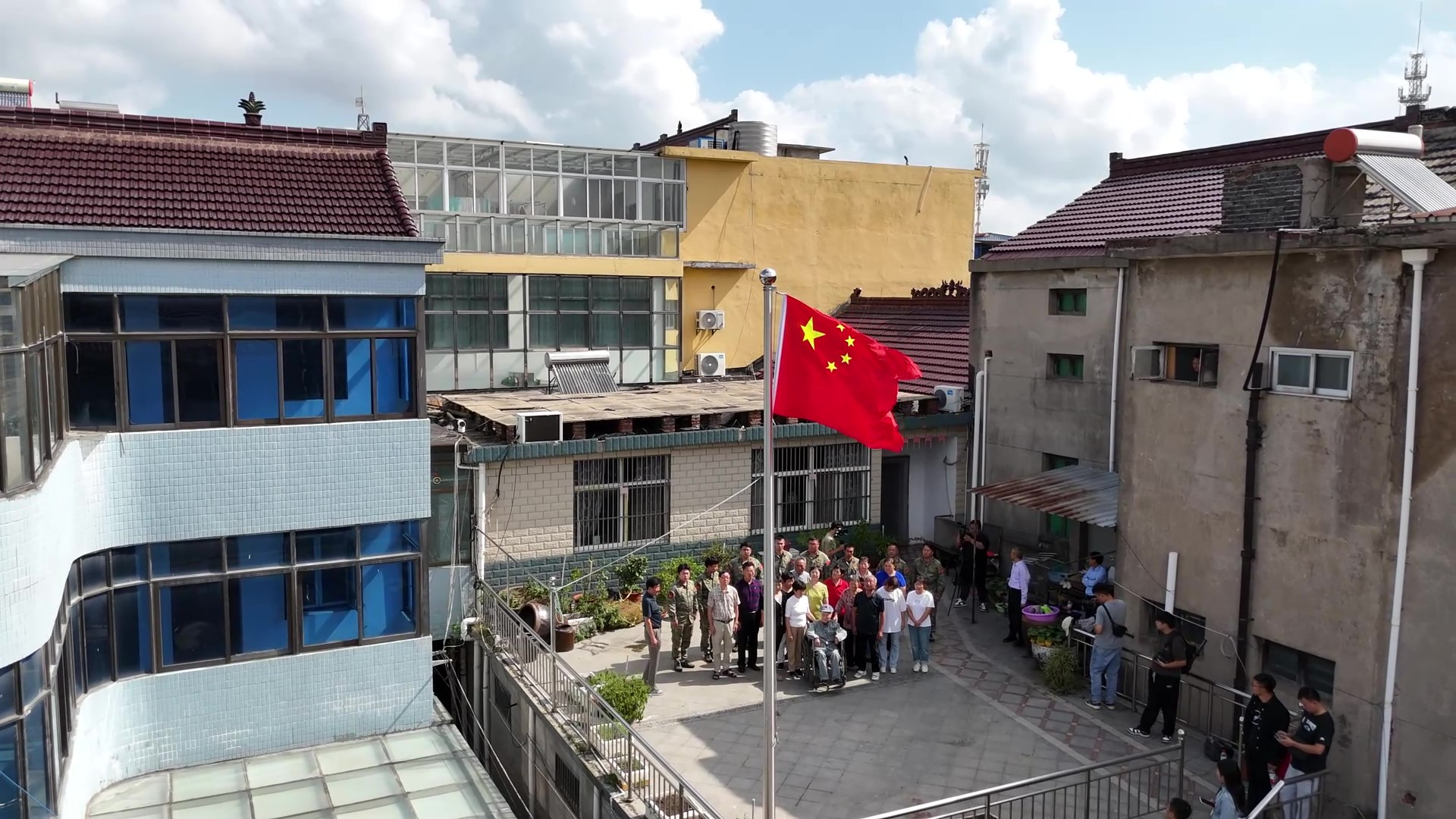 泰州姜堰:110歲老紅軍吳九成家庭院里的升國旗儀式