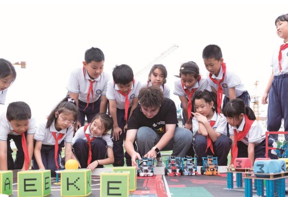 為在教育“雙減”中做好科學“加法”,海陵區積極探索基礎教育為高等教育培養輸送拔尖人才的有效途徑,組織區級科技教育共同體,打造科教課程體系或課程群,初步形成“小初貫通+校內外融通”的區域科技教育特色。各校除開足開齊各類科學課程、設立科學社團,更匯聚多方科普資源、協同社會各方力量、動員廣大科技工作者,一方面“請進來”,開展科學家精神進校園、科技節、科普大篷車等活動;另一方面“走出去”,組織學生前往科學教育場所,進行場景式、體驗式科學實踐,促進科學素質提升。此外,還積極構建二附中、城東小學、實驗小學、海光小學等“學校科技群”,小初一體舉辦中小學生AI創意編程比賽,舉辦“海陵區青少年科技探索營”。如今,科學教育已成為海陵義務教育的靚麗風景。