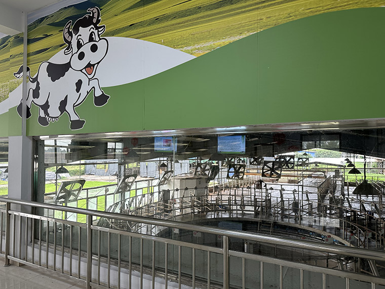小楊社區黨委書記王政說,這里原是幾條廢棄河溝和荒地,2022年開始復墾整治,村集體投入200萬元、企業配套100萬元,村企共同打造“菇菇部落”項目,游客在科普、生產、制作、游玩四個區域,可以享受看菇、聽菇、玩菇、吃菇、購菇“一條龍”體驗。該項目還被評為省中小學生勞動教育與綜合實踐優秀基地。 今年,“菇菇部落”升級了菌棒制作區和田間課堂,優化科普研學、休閑觀光、農耕體驗等新功能,自2022年9月建成后,累計開展研學活動100多場次,接待學生2萬多人次。 奶牛場打造“探鮮奶吧” “從這里可以看到奶牛場制奶全過程,甚至聞到奶味清香。”10月24日,在姜堰區大倫鎮土山村奶牛場內,土山村村委會副主任施冬梅介紹奶牛場研學基地改造情況。