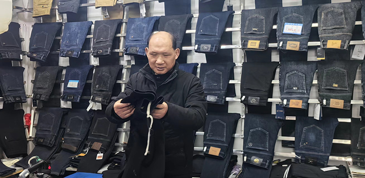 前些天,李丹峰讓父母帶著剛過周的兒子從江西上饒老家來姜堰過節。李丹峰2019年來城區租房賣水果,每年租金8萬元,5年一簽,今年剛剛續租。此外,他和姐夫、姑父等4戶上饒人,一起開了連鎖水果店,專門銷售全國各地名特優水果,2024年生意延伸到6條路邊的10家店面。 李丹峰說,以自己店面所在的中天二村小區為例,鄰里關系非常和睦,身在異鄉如故鄉,上貨忙的時候,鄰居主動搭把手,他們還相互分享各地美食,這讓他享受到人與人之間的溫暖。蛇年初一正常營業,他猜測天氣晴好,人們愛出門逛逛,春節生意會更好。 “衣”往情深, 三代人扎根在姜堰 “金鷹褲業”的店招在姜堰迎賓西路立了35年。“除夕我們一大家12人一起包餃子、吃年夜飯。”今年59歲的伍得文高興地說。