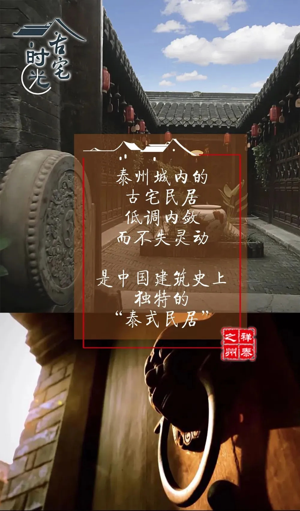泰州 “祥瑞福地、祥泰之州” 吉祥文化 浸潤于百姓日常生活 泰式民居里的 飛檐影壁、青磚黛瓦 處處可見寓意深刻的吉祥圖案 這是泰州人 對家園最普遍的祈福