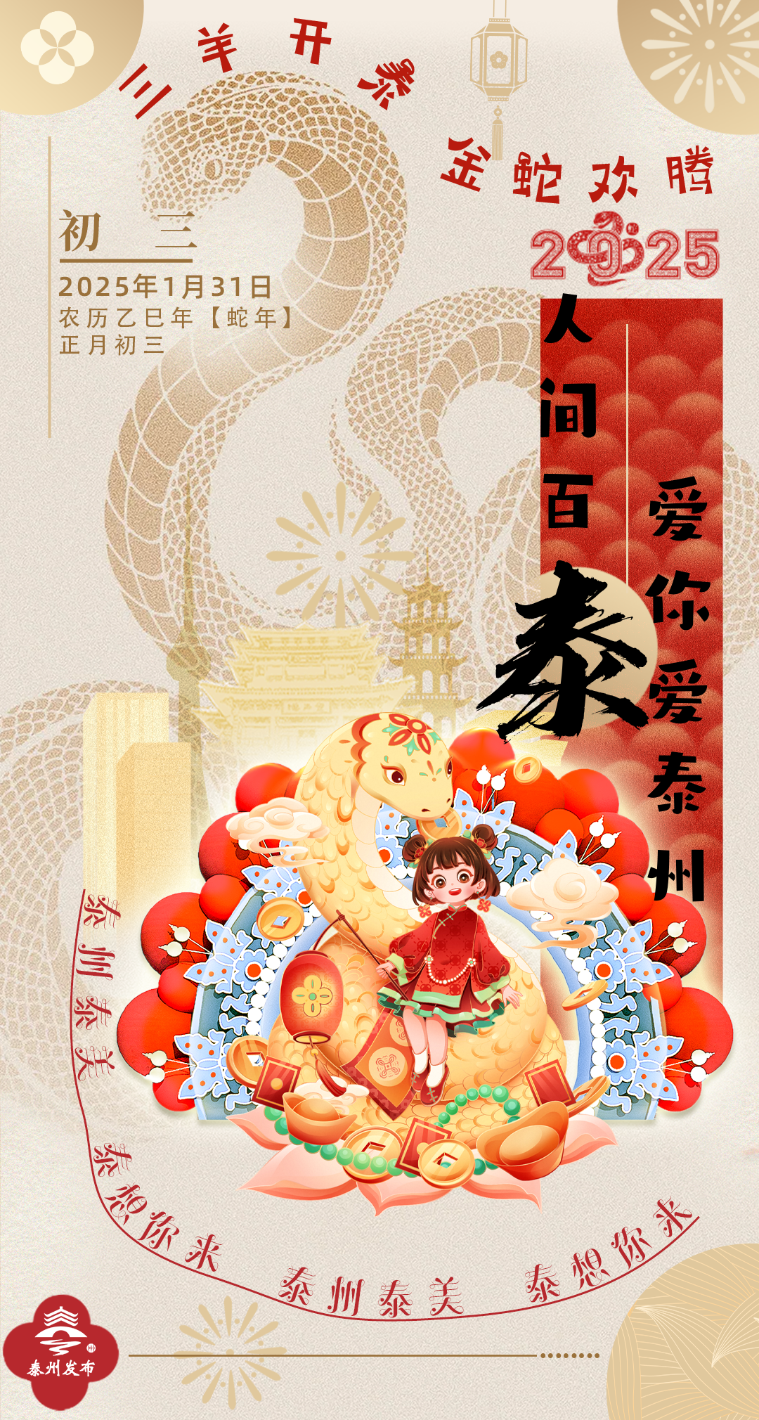 春節里 發布君 推出特別策劃 三 羊 開 泰 金 蛇 歡 騰 三餐四季,有你有泰州~羊羊得意,說你說泰州~一起開掛,和你和泰州~與大家一起共度 歡樂祥和泰州年