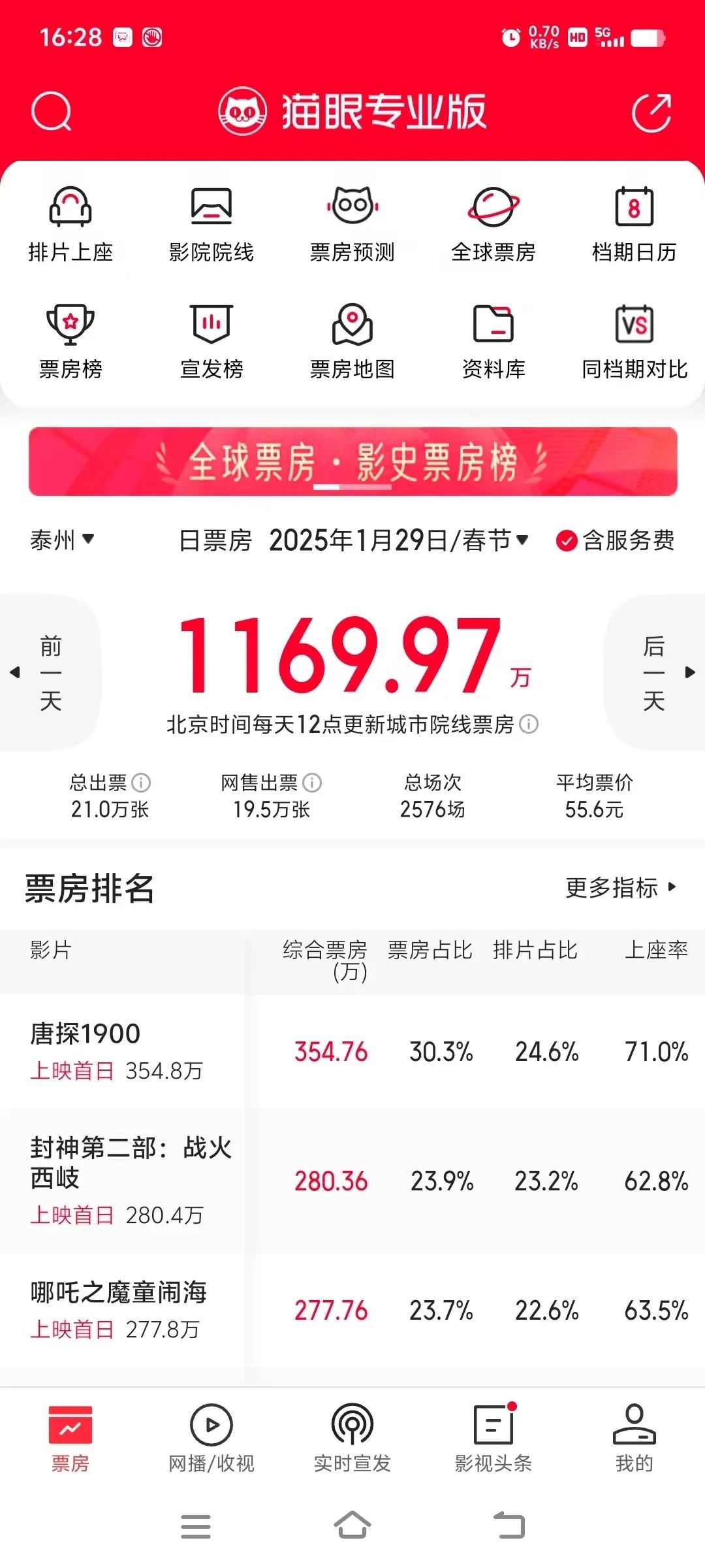 僅僅1月29日(大年初一),我市就有21萬人次走進電影院,單日票房達1169.97萬元,