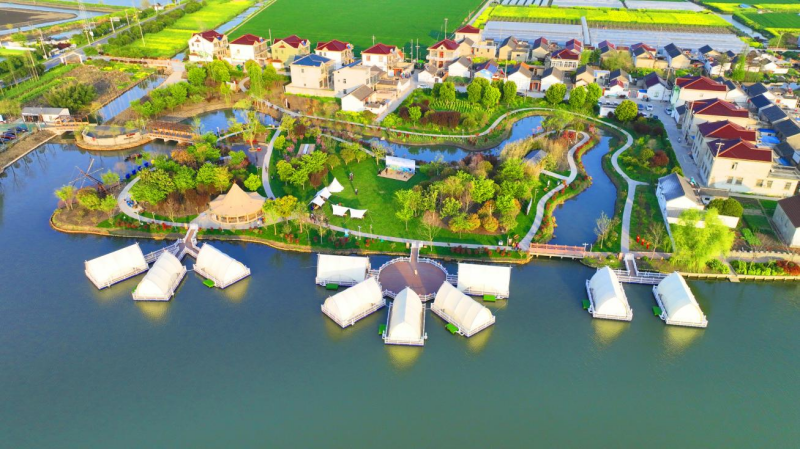 陳楊村曾是一個普通村莊。近年來,該村堅持省市特色田園鄉村同時創建,推進農文旅深度融合,提檔升級村莊環境,獲評江蘇省生態文明示范村、江蘇省鄉村旅游重點村,創成省級特色田園鄉村。 在陳楊村,還有野奢民宿、水上餐廳。船屋一字排開,既能體現水鄉的特質,又將建筑自然過渡到景觀之中,讓民宿與湖面融為一體。該村打造的鄉村會客廳,融合了與旅游相關的“食、住、行、游、購、娛”六大要素。2024年,陳楊村累計接待游客超30萬人次,帶動村集體增收超30萬元,鏈動農戶增收數百萬元。 在興化,像陳楊村這樣蝶變、煥新的案例有很多。近年來,興化市針對自然稟賦和發展階段,有序推進特色田園鄉村建設。先后獲批1個國家田園綜合體試點、1個中國傳統村落,成功驗收23個省級特色田園鄉村,認定23個江蘇省傳統村落、9個傳統建筑組群,實現市縣兩級特色田園鄉村建設鄉鎮全覆蓋。通過梯次建設、產業培育,形成可持續發展、可升級打造的特田建設格局。2023年,興化47個行政村獲批江蘇省首批宜居宜業和美鄉村,數量位居全省第一。47個村中有36個村是省級或泰州市級特色田園鄉村。2024年6月,興化成為江蘇省第一個也是唯一一個入選國家級和美鄉村試點試驗地區。 美味傳奇——品牌農產品飄香 興化大力發展特色優勢農產品,加強農產品品牌建設,打造了一批農業知名品牌,建成了一批“興化基地”。目前已創建“興化大米”“興化大閘蟹”“興化香蔥”“興化青蝦”“興化面粉”“興化魚圓”“興化龍香芋”等7大集體商標和地理標志保護農產品,是全國擁有集體商標和地理標志保護產品最多的縣(市)之一。