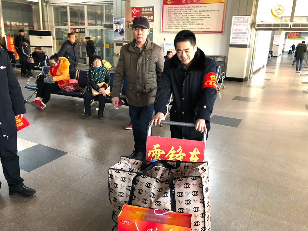 一位去北京走親戚的張大媽,身上背著、手上拎著大包小包,累得氣喘吁吁,正當她手忙腳亂時,“雷鋒車”車手、共產黨員陳一鳴趕忙推車過去,“大媽,東西我幫你拿上車,一會兒我到客車內與你交接。” “我當‘雷鋒車’車手已經是第20任了,原先的車手大多已退休了,我很樂意當這個車手,服務旅客是我走上工作崗位最大的幸福。”陳一鳴高興地說。