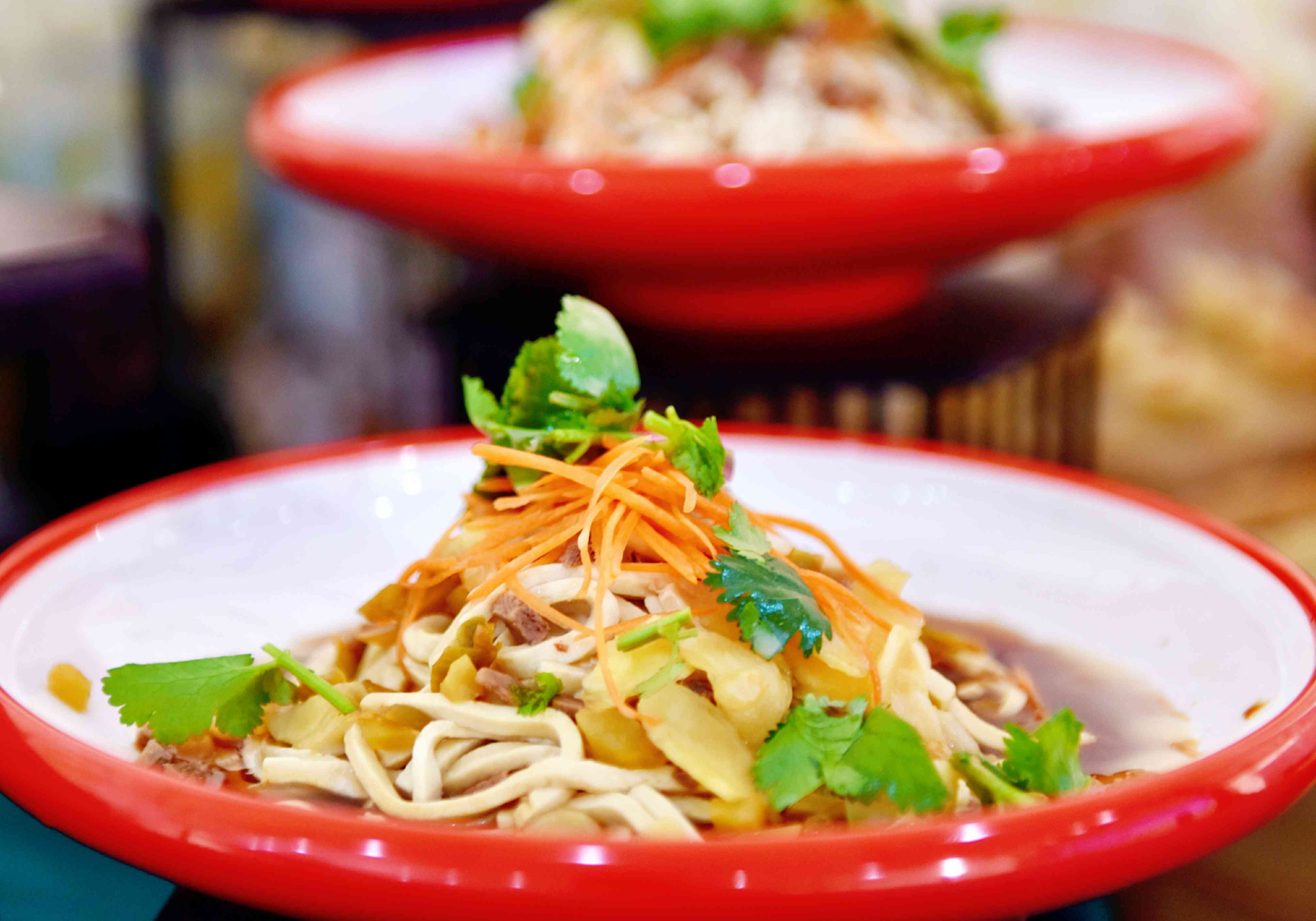 興化早茶的品種有上百種。茶是靈魂,史料記載興化人多飲綠茶和花茶,以八字橋的洪怡泰等“老字號”茶葉為首選。 冷盤是開胃菜,一般來說有8到10碟,有嫩生姜、蜜汁紅棗、糯米甜藕、鹽水河蝦、蔥油海蜇、五香牛肉等。生姜驅寒,紅棗補血,甜藕象征多子多福,光冷盤就吃出了“正餐”的隆重。 干絲是序幕,有燙干絲、大煮干絲,一口干絲一口茶,浮生半日得悠閑。隨后熱菜開始“熱身”,一碗紅糖馓子煮餅、自帶小火爐的肉圓醬蛋粉絲上桌,讓人懷疑這是在吃早餐還是在吃酒席。 接下來是主角點心登場,品種五花八門,最大特點是包子大、餡兒多。在外人看來似乎有點浪費有點土,而廚師們認為餡兒大,湯汁才會滲透到松軟的發面肌膚中去,既香且潤,這是包子的原意和真趣。