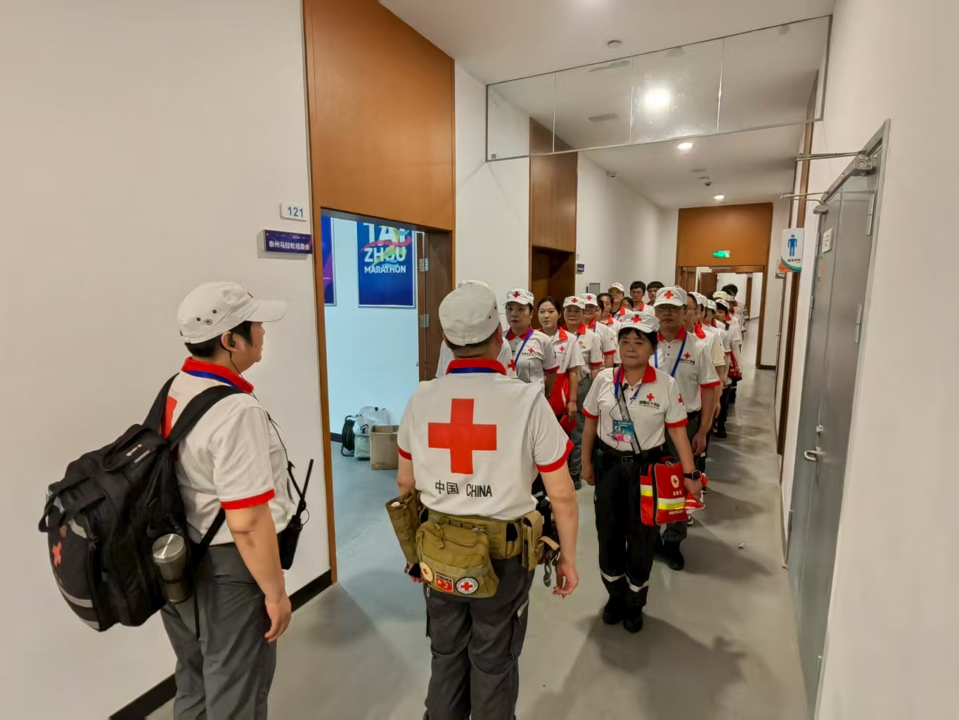 “請問需要幫助嗎?”下午6點,海陵區紅十字應急救援隊隊員沈林發現一位宿遷球迷跛著腳艱難地爬樓梯,主動上前詢問。得知對方右腳有傷,且座位在高處,她立即攙扶對方入座。轉身時,她看到有人被蚊蟲叮咬,渾身是包,快速拿出花露水幫忙涂抹。6點25分,對講機里響起緊急呼叫:“A3區有人中暑!”海陵區紅十字應急救援隊副隊長王九萍,立即上前,將中暑球迷轉移至通風區域,用冰塊物理降溫,并細心清理球迷身上嘔吐物。“泰州的服務細致、到位!”球迷陳先生連連稱贊。 由于持續高溫悶熱,中暑事件接連發生。上半場,E4區一名女球迷突發中暑并伴有低血糖癥狀,暈倒在座位上。海陵區紅十字應急救援隊常務副隊長王偉,迅速聯合醫療人員及泰州市藍天救援隊展開救治。經過物理降溫、補充電解質飲料及服用解暑藥物等救治措施,10分鐘后,女球迷逐漸恢復意識,身體狀態明顯好轉。 據悉,紅十字應急救援隊的服務工作貫穿賽事始終,下午2點半,全體隊員到崗待命,一直忙到晚上10點半才結束全部工作。 場外市民熱力狂歡