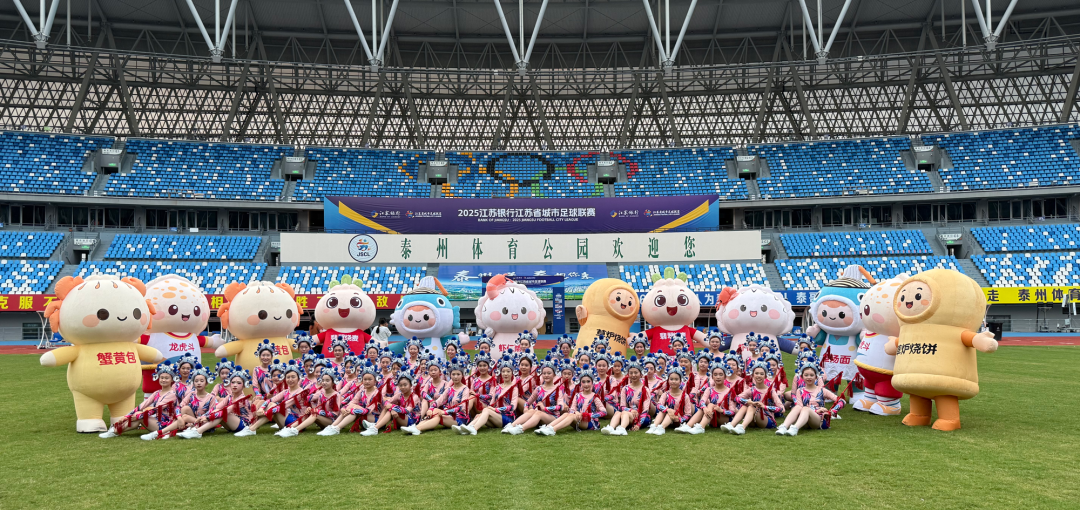 一陣激昂的鼓點驟響,60名女演員踏著鏗鏘的步伐登場。她們頭戴鳳冠,身穿繡有鳳凰紋樣的戰袍,手持馬鞭,瞬間將觀眾帶入金戈鐵馬的古戰場。這支名為《掛帥》的節目,由海陵區精心編排,20名中小學生與40名幼兒園教師聯袂出演。演員通過剛柔并濟的動作,生動再現穆桂英披掛上陣的颯爽英姿。 中場休息時,興化則帶來助威表演《楚水雄風》。88名拉拉隊隊員登場,他們身著橙色上衣,頭戴螃蟹造型發飾,宛如一片躍動的火焰,瞬間點燃全場。8名來自興化市淮劇團的專業演員,則以水滸人物形象亮相,一段《水滸傳》選段渾厚激昂,武術演員持棍對打,招招帶風,棍影交錯間再現梁山好漢的豪邁氣概。“這氣勢像在看武打片!”球迷王雪感嘆道。