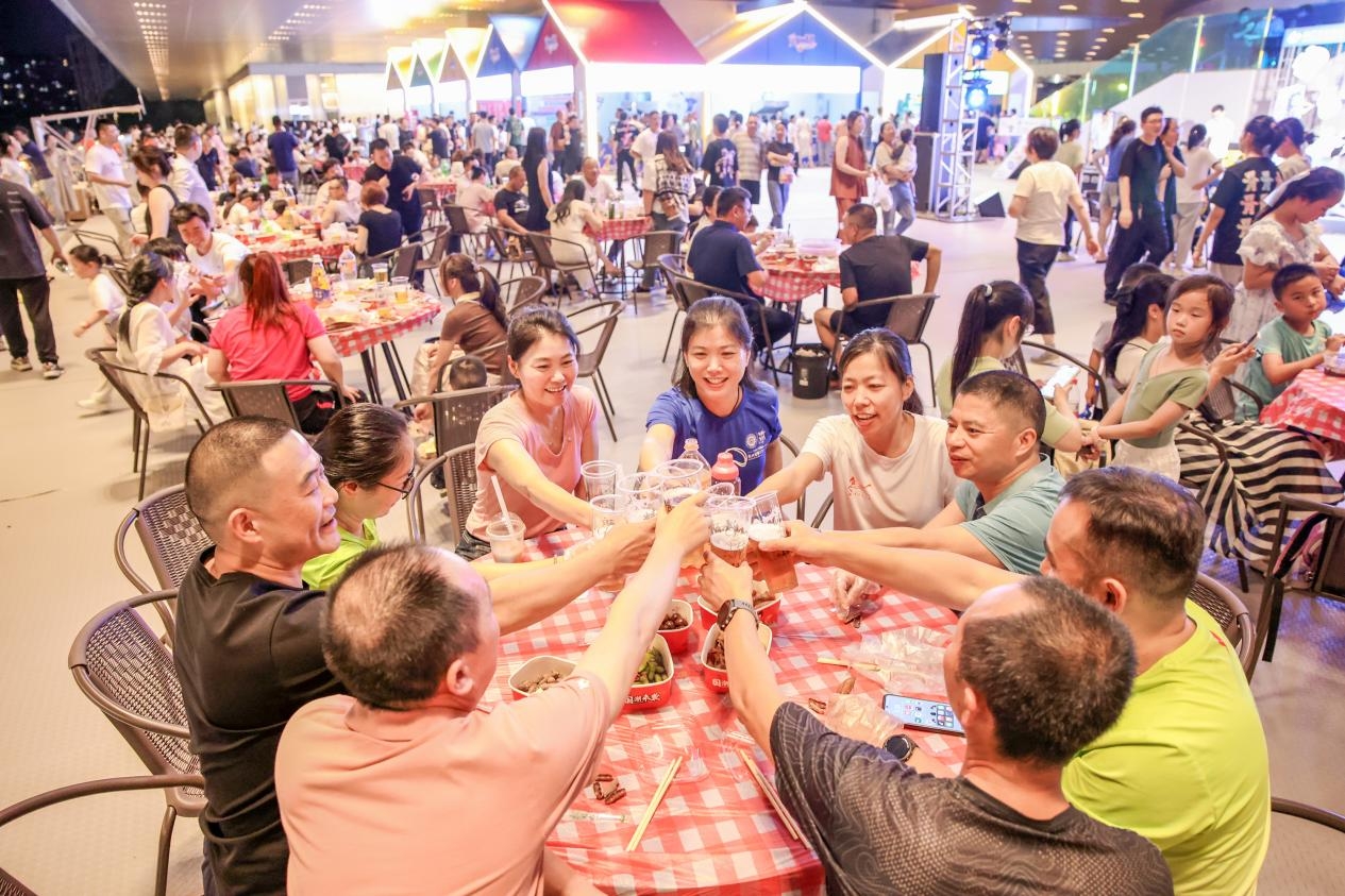 ▲市民游客舉杯分享 籃球競技的熱血點(diǎn)燃了激情,夜市美食的煙火承載了期待,賽事和消費(fèi)的雙向奔赴已不是簡單的疊加,而成為一場全民參與、全民共享的同頻共振。