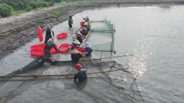 雙洋特種水產養殖基地分工明確,有的在塘中圍捕,有的將剛出水的蝦按大小分揀,還有的負責將鮮活的蝦快速裝車,確保第一時間送往合作社。基地后勤部負責人蔡紅華介紹:“基地每日羅氏沼蝦產量3000至4000斤,從6月中旬啟動銷售以來,這些帶著晨露的新鮮蝦類,正通過合作社的渠道發往各地市場。” 隨著羅氏沼蝦持續上市,雙洋特種水產養殖基地不僅成為區域水產行業的“豐收標桿”,更以“生態養殖+就業增收”的模式為鄉村振興注入鮮活動力。回顧基地的發展,蔡紅華頗為感慨:“去年是第一年投產就收獲了200萬斤,今年行情穩,產量也差不多。”