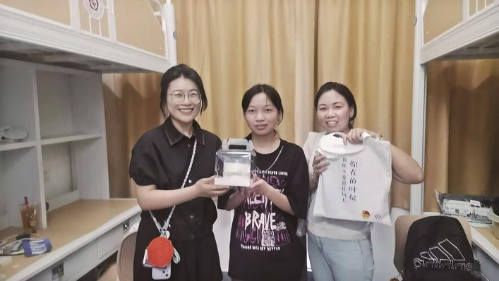 ▲39輛大巴滾動(dòng)式接駁新生 為配合各在泰高校迎新工作,市交產(chǎn)集團(tuán)協(xié)調(diào)了39輛大巴滾動(dòng)式接駁新生,其中2輛“泰有引力”涂裝大巴特別吸引眼球,這是泰州為青年人才定制的專屬大巴,服務(wù)高校學(xué)生開展城市體驗(yàn)活動(dòng),之后還將為同學(xué)們提供節(jié)假日商圈景點(diǎn)免費(fèi)接駁服務(wù)。 南京師范大學(xué)泰州學(xué)院學(xué)生家長們陪孩子坐上“泰有引力”接站大巴后連連感慨:“服務(wù)太貼心了,泰州在用滿腔熱情迎接新同學(xué)。” 迎新活動(dòng)出彩更走心 9月14日,泰州職業(yè)技術(shù)學(xué)院新生孫穎琪到校報(bào)到。這天恰逢她的生日,學(xué)院團(tuán)委的老師捧著生日蛋糕、帶著泰州文創(chuàng)禮包送到她宿舍,為她送上暖心祝福。“真是太驚喜了!”孫穎琪十分感動(dòng)。 ▲泰州職業(yè)技術(shù)學(xué)院為新生送上生日蛋糕。 為了讓同學(xué)們更快地了解泰州、熟悉泰州,各在泰高校精心策劃了豐富多彩的迎新活動(dòng)。泰州學(xué)院讓新生解鎖專屬報(bào)到號(hào)碼,成功打卡可以領(lǐng)取精美的迎新文創(chuàng)產(chǎn)品;南京中醫(yī)藥大學(xué)泰州校區(qū)打造中醫(yī)藥文化集市,邀請(qǐng)新生識(shí)中藥、品香茗、做香囊,了解學(xué)校中醫(yī)藥文化傳統(tǒng)和特色優(yōu)勢;泰州學(xué)院、泰州職業(yè)技術(shù)學(xué)院為生日恰逢報(bào)到日的同學(xué)準(zhǔn)備了生日會(huì),報(bào)到時(shí)送上一份生日蛋糕和泰州文創(chuàng)產(chǎn)品。 江蘇農(nóng)牧科技職業(yè)學(xué)院的新生畢惠瑩,將進(jìn)入動(dòng)物醫(yī)學(xué)專業(yè)學(xué)習(xí)。“之前對(duì)泰州不是很了解,現(xiàn)在了解到,原來這里是梅蘭芳先生的故鄉(xiāng),早茶更是全國聞名。”她希望未來幾年能在學(xué)校學(xué)到豐富的知識(shí),更能在泰州實(shí)現(xiàn)自己的人生夢想。 相關(guān)部門在各高校都設(shè)置了城市迎新點(diǎn)位,為來泰新生發(fā)放精心繪制的城市融入“秘籍”,讓新同學(xué)快速解碼“泰好吃、泰好行、泰好玩、泰好逛”,同時(shí)了解泰州最新的人才政策。迎新點(diǎn)位現(xiàn)場發(fā)放飲用水,并提供應(yīng)急充電服務(wù),贏得學(xué)生和家長的好評(píng)。 從大學(xué)相遇到城市相邀 大學(xué)新生來到泰州,為這座城市注入青春活力,泰州也努力讓更多學(xué)生愛上這里、留在這里。