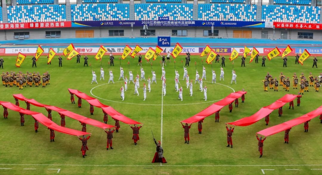 由靖江市人民政府推薦 靖江市文體旅游局精心策劃的 《“岳” 戰越勇》 將在賽前暖場節目中 壓軸登場 該節目 以岳飛“精忠報國”精神為主題 在穿越時空的古今對話中 巧妙地將“背嵬軍”的鐵血意志 轉化為球員的拼搏精神 為“蘇超”賽事 注入深厚的文化內涵