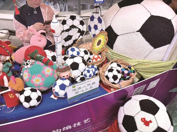 ▲海陵鉤編足球作品。 傍晚,非遺展演活動拉開序幕。靈動的木偶戲《戲韻千秋》、詼諧的童子戲《抬判》依次上演,展現泰州風土人情的舞蹈《泰興花鼓》、茅山號子《春耕》等緊隨其后,武術串燒、“海陵竹韻”抖空竹表演等節目更是將現場氣氛推向高潮。南京人郭小艷說:“我們專程來泰州看球賽,沒想到還能賞非遺、品美食,氛圍太棒了!” 據了解,本次活動由江蘇省文化和旅游廳、泰州市人民政府主辦,旨在以非遺為抓手,把“蘇超”流量轉化為“文旅增量”,展現非遺之美及江蘇人民的文化傳承與再創造,助力江蘇文旅產業及經濟社會高質量發展。