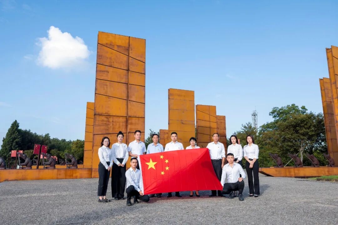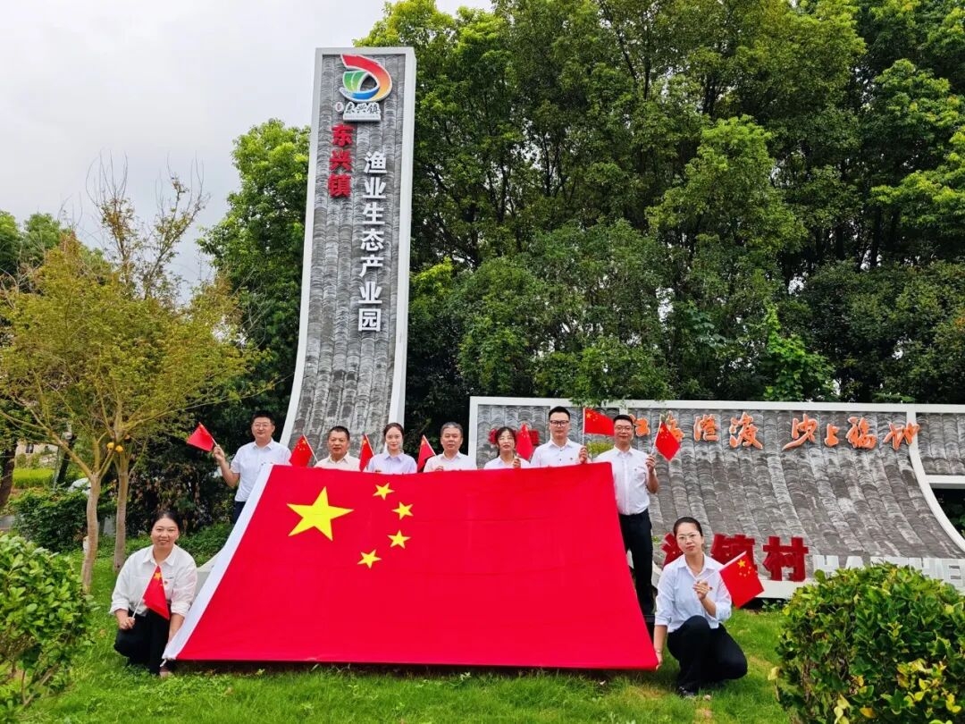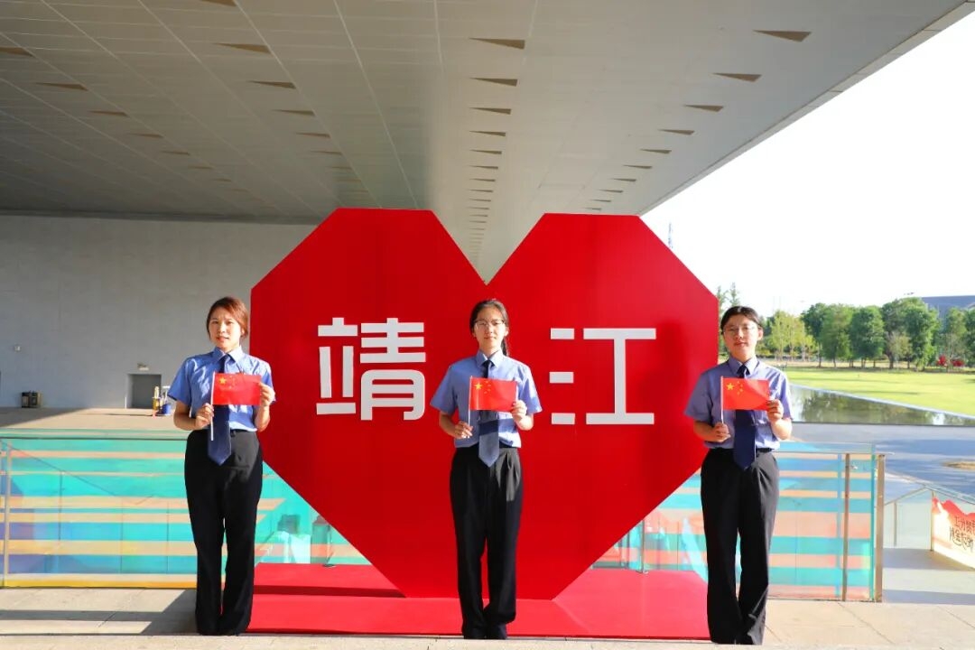 長江文化中心 東線第一帆渡江戰役紀念公園等 靖江特色地標 也迎來了一抹熾熱的紅 他們用合影表達同一種心聲 “我在靖江,祝福祖國!”