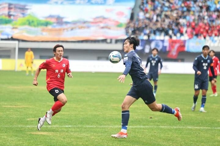 第五輪與徐州隊的比賽中,巴特一記倒掛金鉤,動作舒展、行云流水,堪稱本屆賽事技術含量最高的進球之一;第六輪與鎮江隊的較量里,范厚泰的超遠吊射劃出美妙弧線,皮球直掛網窩,充分展現了球員的洞察力與腳法;第八輪與連云港隊的對決中,吳碩濤復制“羅本”經典,內切兜射直掛死角,完美演繹了個人能力與進攻智慧的融合…… 這些進球不僅為球隊贏得了關鍵勝利,更征服了無數球迷,展現出泰州足球的獨特魅力。 巔峰對決,黑馬能否一黑到底? 決賽對手南通隊實力不容小覷,他們在本賽季保持著不敗戰績,整體表現穩定而出色。在常規賽第三輪的交手中,南通隊曾以4:0戰勝泰州隊。