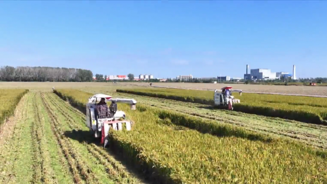 春種一粒粟,秋收萬顆子。泰興市延令街道三陽村一處家庭農場也是一幅豐收圖景,3臺收割機來回穿梭,收割、脫粒、粉碎秸稈一氣呵成,金黃的稻谷“盡收囊中”。今年,該農場種植了814畝水稻,通過選擇優質品種、科學播種、合理密植、精準施肥以及病蟲害綜合防控等一系列精細化管理措施,保障水稻產量。 目前,泰興市60多萬畝水稻已陸續進入成熟期并開鐮收割,預測平均單產超過645公斤,眼下正在加快收獲騰茬進度,成熟一塊、收獲一塊、播栽一塊,力爭11月中旬全面完成秋收秋種工作。 泰興市延令街道三陽村村委會副主任符榮軍說:“針對于今年的特殊情況,我們提前召集了種植大戶進行開會,要求他們對于易倒伏和倒伏情況相對嚴重的地方,進行先行收割,確保顆粒歸倉。” 今年,江蘇泰州水稻種植面積達270多萬畝,從10月22日起,泰州各地陸續開鐮收割,目前泰州市農業農村部門已統籌調度4056臺收割機,5951臺大中拖拉機,3927臺(套)谷物烘干機,助力糧食搶收,保障豐收果實順利歸倉。