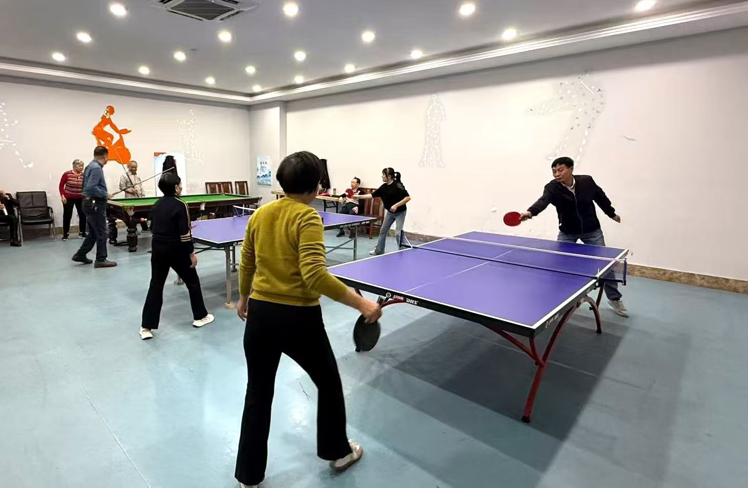 黃家琦說:“我們在這里過得蠻好。上下午打牌、打乒乓球、臺球,社區還舉辦一些講座,提高老年人的生活質量,中午還有飯吃。這里的條件也比較好,每天都有百十名老年人來。” 為回應老年人多層次、多樣化的服務需求,三營社區傾力打造了睦鄰中心這一綜合服務平臺,創新推出“睦鄰驛家”服務項目。通過構建“三營五美”服務陣地,其中專門聚焦老年群體的“桑榆美”作為敬老驛站,常年穩定提供助餐、公益培訓、文化娛樂等服務,讓居民在“家門口”就能找到歸屬感與幸福感。此外,社區還積極組織文藝匯演、健康知識講座等各類文體科普活動,豐富老年人的精神文化生活。在醫療衛生方面,隨著社區衛生服務中心嚴格落實基層首診制,社區每年還為轄區老年人提供定期的健康體檢服務,為他們的身體健康保駕護航。