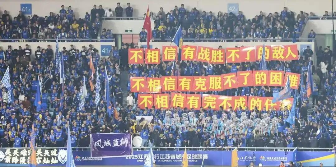然而,正如央視足球解說員賀煒所說:“請不要相信,勝利就像山坡上的蒲公英一樣唾手可得,但是請相信,世界上總有一些美好值得我們全力以赴。” 沒有人能夠隨隨便便成功!那些為了夢想的拼搏,為了生活的美好,總能以某個不起眼的細節打動我們,總是在云遮霧繞中閃閃發光。“蘇超”,讓我們看到了泰州人在生活日常里迸發的英雄主義,看到了平凡人生命不息、奮斗不止的不竭努力。 泰州隊的奪冠,不僅是一場足球比賽的勝利,更是一次城市精神的集中彰顯,實現了足球運動與城市發展的雙向賦能。 賽季初的慘敗沒有讓他們退縮,反而激發了更強的斗志;淘汰賽的“魔鬼賽程”沒有讓他們畏懼,反而成為展現韌性的舞臺;點球大戰的高壓考驗沒有讓他們崩潰,反而憑借過硬的心理素質和扎實的準備脫穎而出。每一場比賽、每一次拼搶、每一次堅守,都是泰州城市精神的生動注腳。 奮進泰州 不相信有戰勝不了的敵人 冠軍獎杯的榮光屬于過去,但“三個不相信”的精神力量永恒。