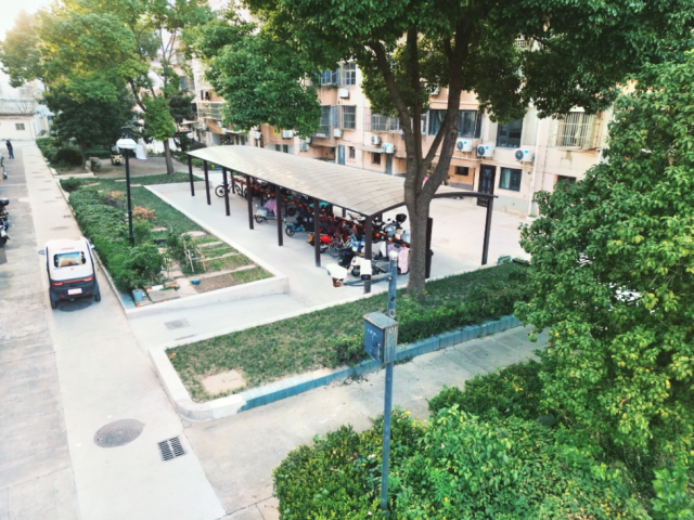 在建設過程中,注重保留原有高大喬木樹種,見縫插針式增設充電棚,實現了小區環境優化與民生項目建設的有機結合。
