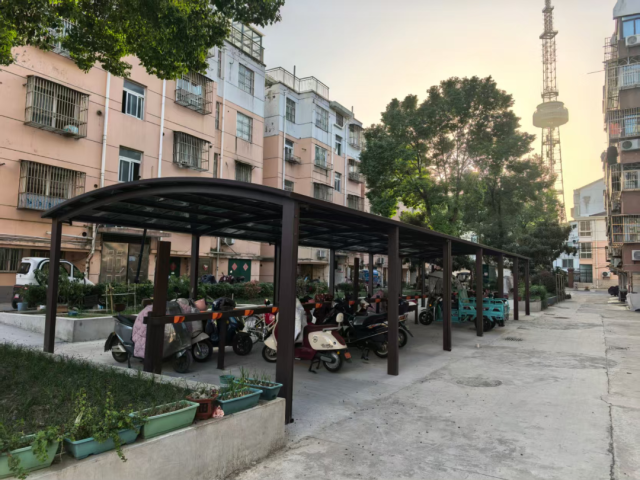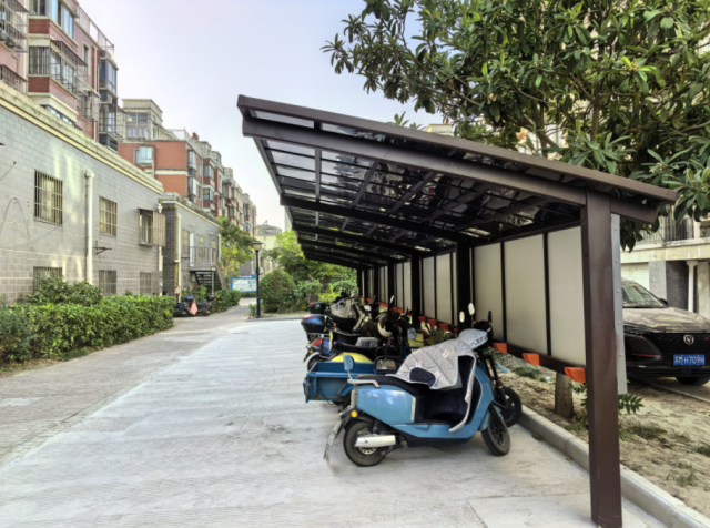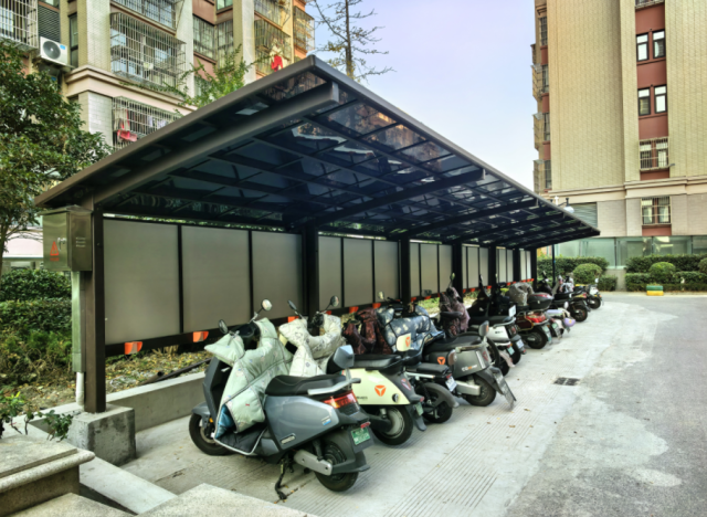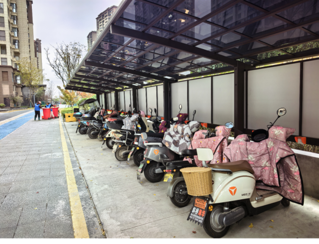 值得一提的是,今年姜堰區新建的電動自行車充電棚對比往年有了全方位升級煥新,從材質到工藝、從設計到適配,處處都是亮點。 材質升級,安全性能顯著提升:車棚架構選用全新的6063—T6鋁型材骨架,并經過廠內精細的粉末噴涂工藝處理;鋼欄桿采用熱鍍鋅鋼管,搭配廠內先進的氟碳噴涂技術。與傳統鋼膜結構車棚現場制作相比,其防腐、防銹、防火性能實現了質的飛躍,耐火極限超過2.5小時,為車輛充電安全筑牢了堅實保障。