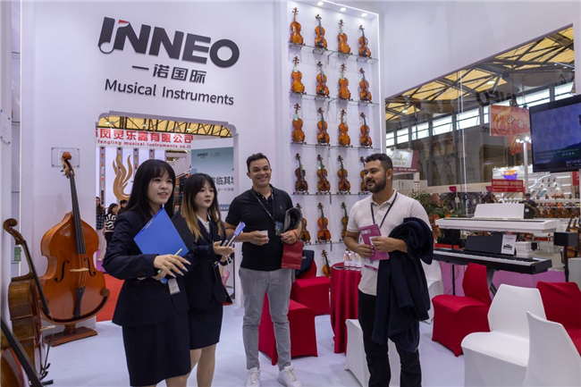 ▲一諾國際工作人員介紹AI吉他。 唐春杰 供圖 一諾國際樂器集團是一家由樂器制造、音頻聲學、半導體等領域資深專業人士聯合創立的國際化企業,長期專注于智能樂器的核心技術攻關。近年來,企業在音源核心技術、智能系統架構與專業音頻處理等領域,實現多項關鍵性技術突破,技術水平達到國際先進水準。 此次展會吸引了來自全球的行業精英參與。一諾國際以行業最大展位亮相,其開放式展區設計巧妙融合傳統工藝與現代科技,集中展示全系列高端弦樂器及智能樂器新品,成為關注度最高的中國參展品牌之一。 其中,PHOENIX超級智能吉他K1的全球首秀成為最大亮點。該款吉他創新性搭載人工智能技術,集成智能編曲、萬能模式與自適應演奏反饋等功能,可實現“零基礎入門,十分鐘彈唱”,被業界譽為“超強版AI吉他”。PHOENIX全手工高檔小提琴OVD901系列,憑借出色的聲學表現與工藝水準,贏得了多位專業演奏家的青睞。 “我們的展位吸引了來自美國、哥倫比亞、厄瓜多爾、馬來西亞等20多個國家的專業采購商、演奏家及音樂教育機構代表駐足體驗,有效接洽量較上屆增長超40%。”一諾國際總經理錢軍建說,憑借技術創新與品質升級,交易實現逆勢增長,現場成交金額超200萬美元,同比增長超50%,創下公司參展以來最高單日成交紀錄。