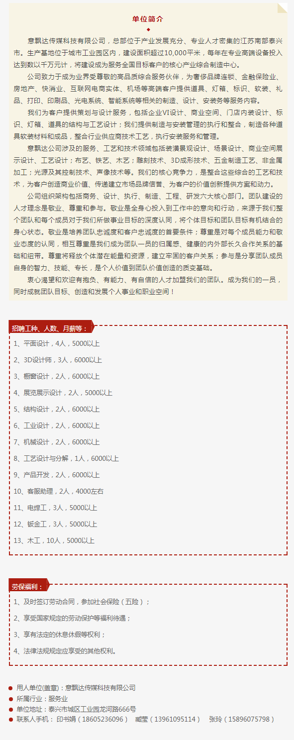 百成數碼影業有限公司、江蘇博門藝嘉網絡技術有限公司、意飄達傳媒科技有限公司2019招聘簡章