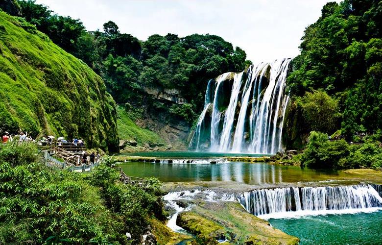 早餐后乘車前往【黃果樹景區】(車程約2.5小時)(含黃果樹瀑布,含天星橋,含陡坡塘瀑布,含區間車50元,不含黃果樹扶梯50),游覽有亞洲第一大瀑布之稱的黃果樹瀑布(黃果樹大瀑布您可選擇步行40分鐘至谷底或自行乘坐上下扶梯50元(單程30元)至谷底游覽)(游覽1.5H)-感受飛流直下三千尺,疑似銀河落九天之氣魄,游覽天星橋景區(游覽2H),漫步其中,到處可見泉水噴涌,飛瀑傾瀉,有水皆成瀑,是石總盤根成為天星橋的真實寫照:盆景園、水上石林,游覽陡坡塘瀑布(游覽1H)。贈送大型歌舞表演——多彩貴州風。