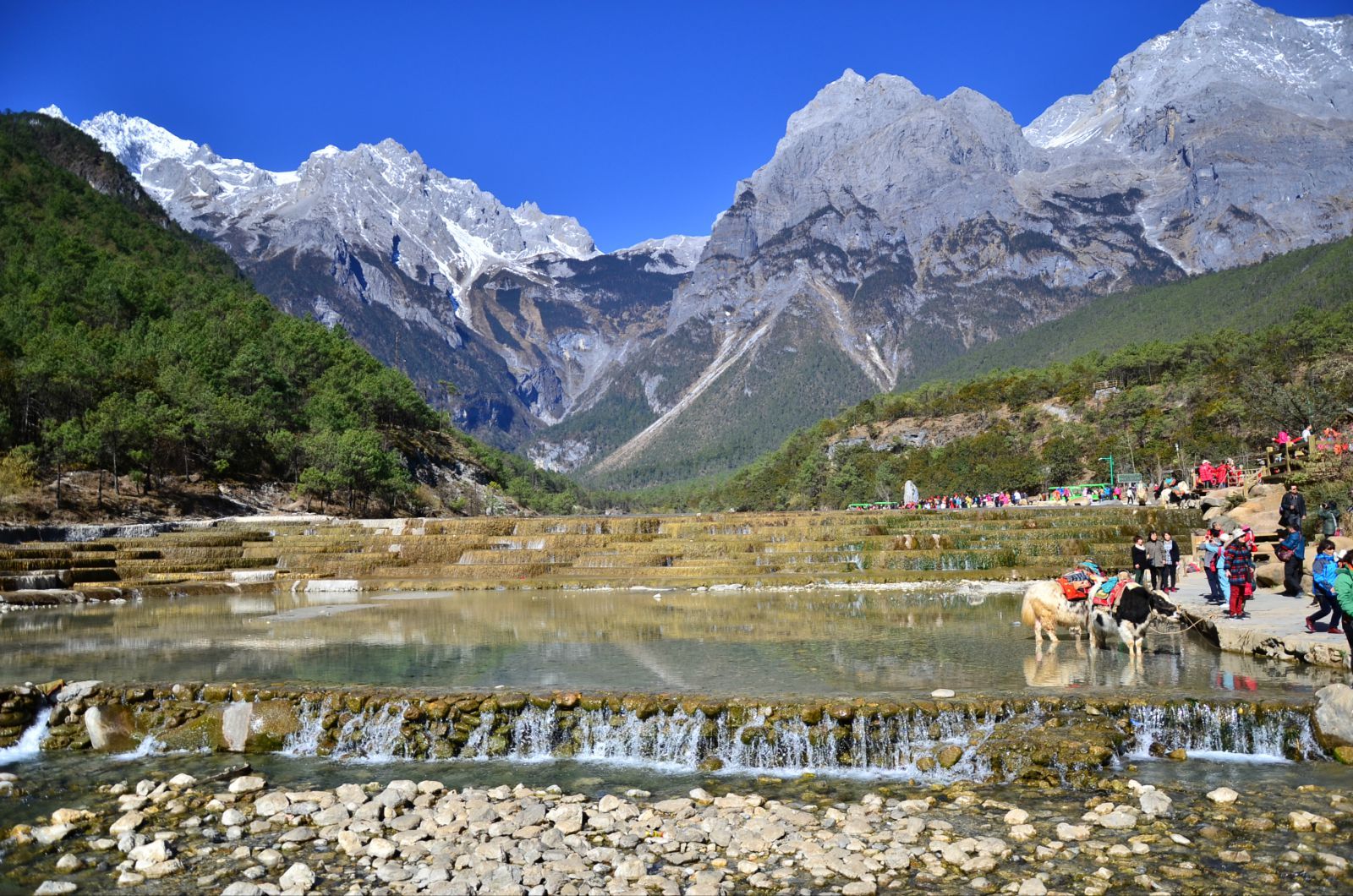 今天會去玉龍雪山喲,怕冷的小伙伴請自行準備一件輕薄的羽絨服,也可以到了景區再租賃。早餐后,乘車前往納西族地界內納西族三垛神化身神山-【玉龍雪山風景區】(含進山費,冰川大索道、環保車),途經娓娓甘海子牧場,乘【冰川大索道】至海拔4800米,登臨玉龍雪山上至冰川大索,高海拔空氣澄澈,植被清新暗香,遠離都市塵囂,清心而寧靜。接著游覽雪山冰雪融化而成的涓涓白水河和靜躺在山谷樹林環抱中素有“小九寨”之稱的幽幽藍月谷(景區內電瓶車自理)。小伙伴就要一起找【非洲鼓】音樂老師拜師學藝了喲,學習如何做一枚文藝青年,敲敲非洲鼓唱唱民謠什么的!找對感覺之后晚上小伙伴們就可以一起組團去【胭火酒吧】踢館啦!(每人贈送一瓶啤酒)不泡酒吧不聽民謠都不好意思說去過麗江呢,哈哈。