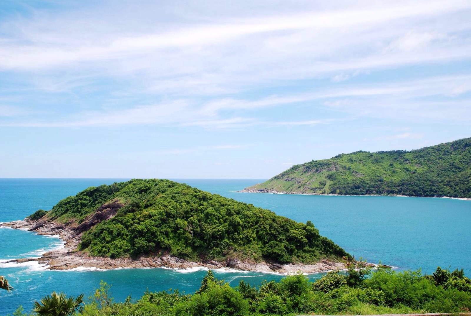 【神仙半島】然后乘車前往位于泰國普吉最南端的蓬貼海角,因景致迷人,情調浪漫,觀景臺上供了一尊大的四面佛,被稱為神仙半島。站在島上一個至高的觀景臺往西和南看去,是一望無垠、煙波浩渺的印度洋。碧海藍天一望無際,岸邊高挑的棕櫚樹宛若碩大的蒲公英;三面大海深藍,點綴幾座孤島,這景象既美麗又優靜。神仙半島的一大亮點就是日落,很多人來這里看日落,因此,也有些“老外”叫它日落島。在這里能夠將浪漫愛情演繹得近乎完美,不會留下遺憾。