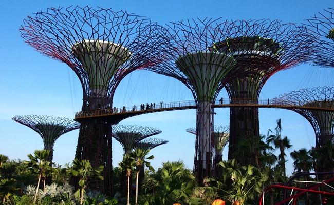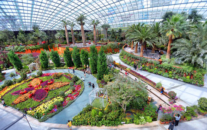 【濱海灣花園】(約45分鐘)新加坡的新地標,曾贏得了2012年世界最佳建筑獎(Winner of WorldBuilding of the Year 2012),由溫室(花穹和云霧林室內(nèi)門票140元自理,我社可代訂)18棵超級樹、文化遺產(chǎn)花園、植物世界、蜻蜓湖和翠鳥湖等組成。