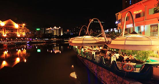 【夜游新加坡河】(約30分鐘,含游河船票)前往碼頭搭乘游船。新加坡河貫穿整個城市,是新加坡的生命之河。我們自克拉碼頭登上游船,沿新加坡河順流而下,通過加文納橋(烏龍橋)和安德遜橋,經(jīng)過新加坡最繁華的金融區(qū)、舊國會大廈、皇后坊、浮爾頓酒店、魚尾獅公園、維多利亞紀念堂、濱海藝術(shù)中心等建筑,到達濱海灣后調(diào)頭往克拉碼頭駛回。一河兩岸,夜色下高樓大廈燈火璀璨。閃爍與耀眼的霓虹燈把城市的夜晚裝點得繽紛多彩,獅城的夜景盡收眼底。