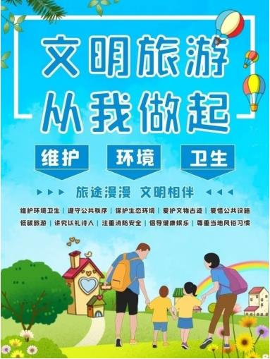 文明旅游小貼士 1.倡導就地旅游 合理安排國慶假期出行,盡量減少跨市出行,密切關注國內疫情動態和中高風險地區變化情況,不前往疫情中高風險地區所在區域,確需出行的,密切關注目的地和途經地疫情形勢,切實做好個人防護,減少感染風險。