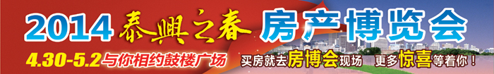 宜居泰興、綠色地產,2014泰興之春房產博覽會4月30日至5月2日,在鼓樓文化廣場盛大舉行,品質樓盤傾情加盟,精美禮品等你來拿,選房買房就來房產博覽會現場!