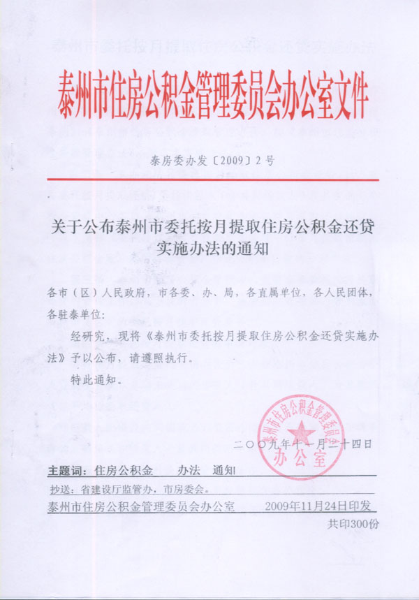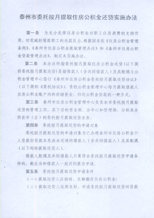 關于公布泰州市委托按月提取住房公積金還貸實施辦法的通知